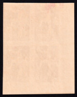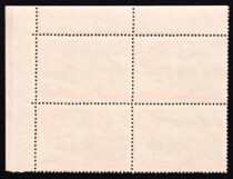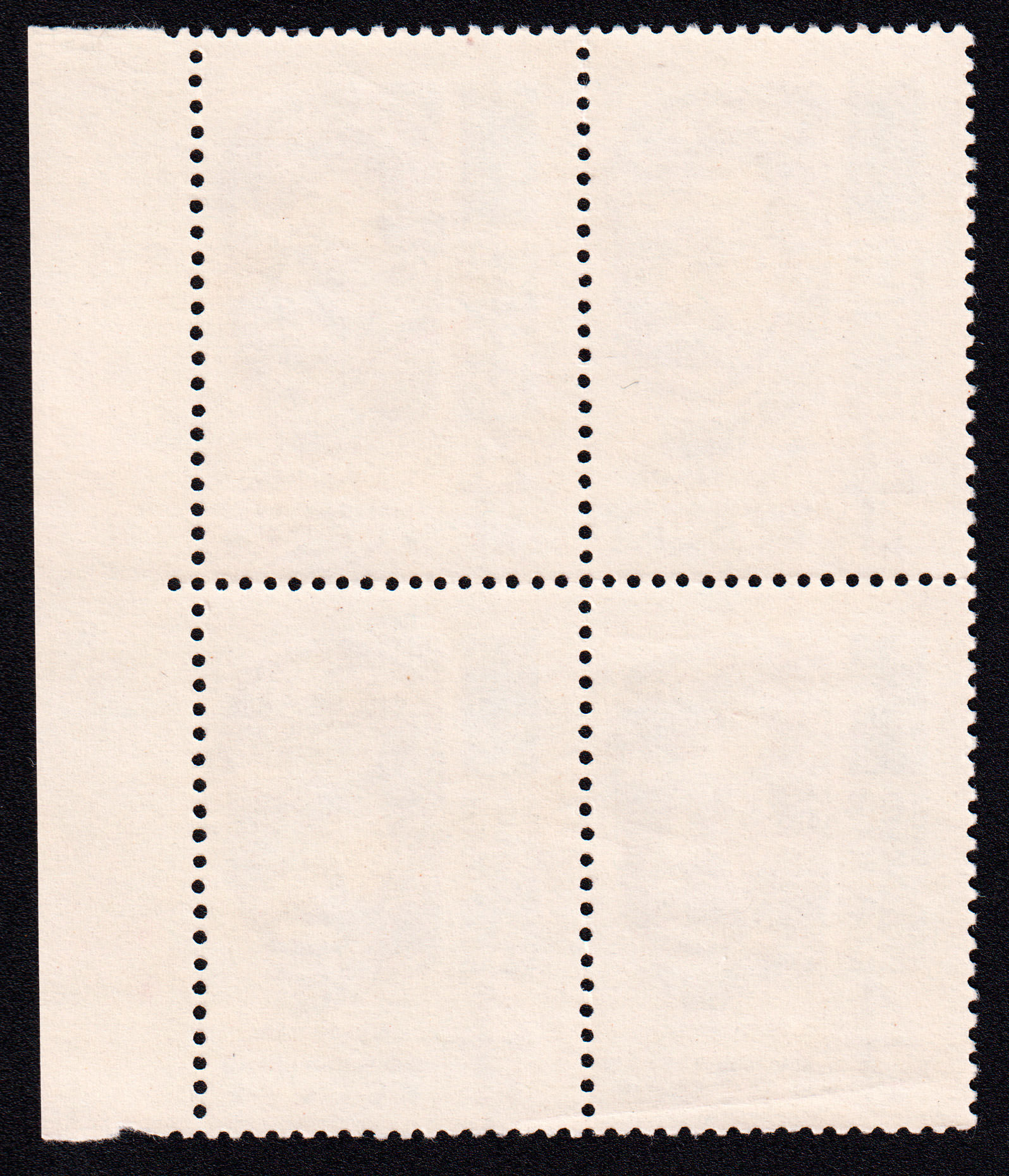 Квартблок с полем. Кат. № 2801А. Принудительное (филателистическое) гашение, марки с клеем. Цвет: лилово-карминовая. Печать: металлография. Перфорация линейная 11 1/4. Бумага: плотная.