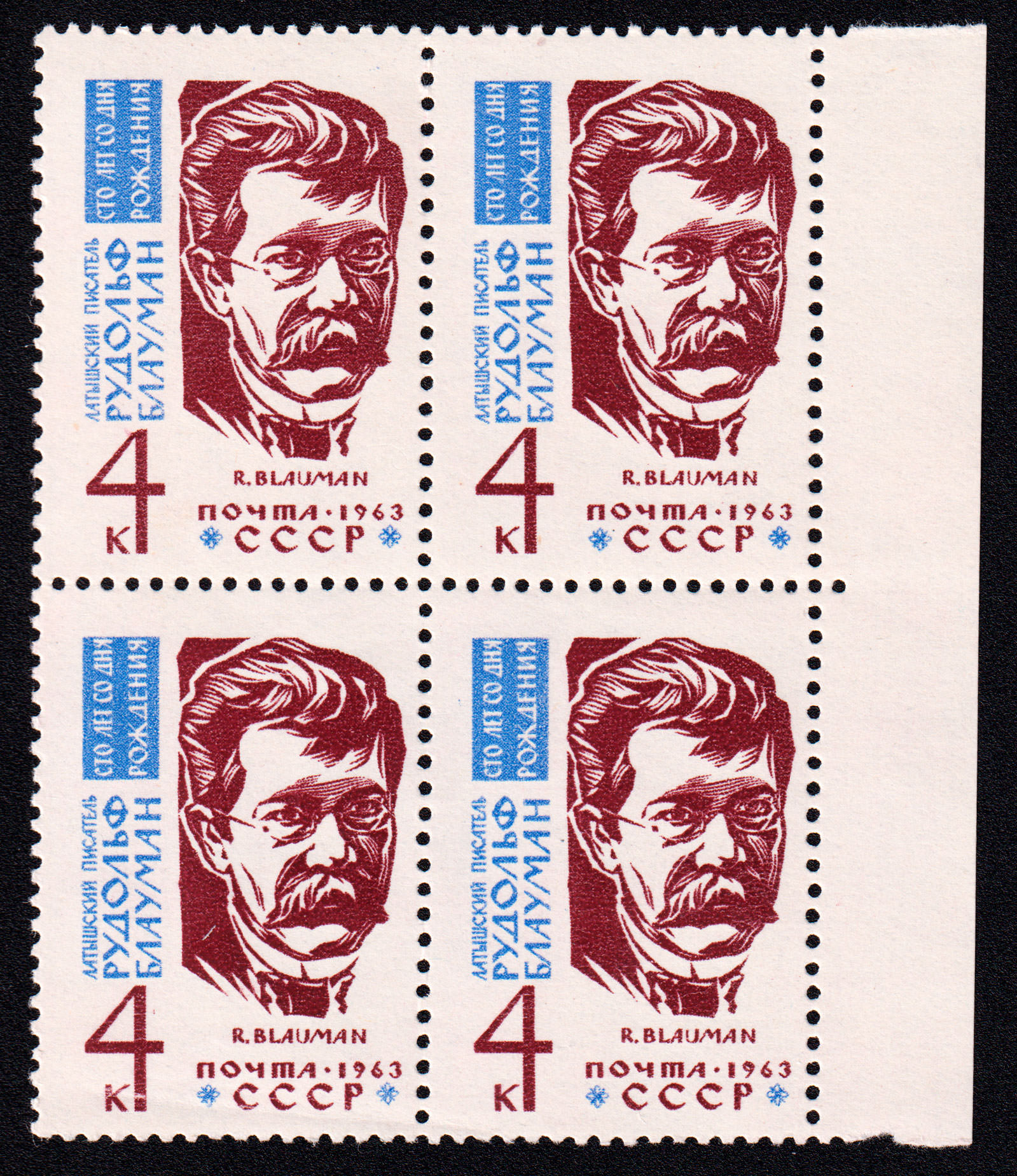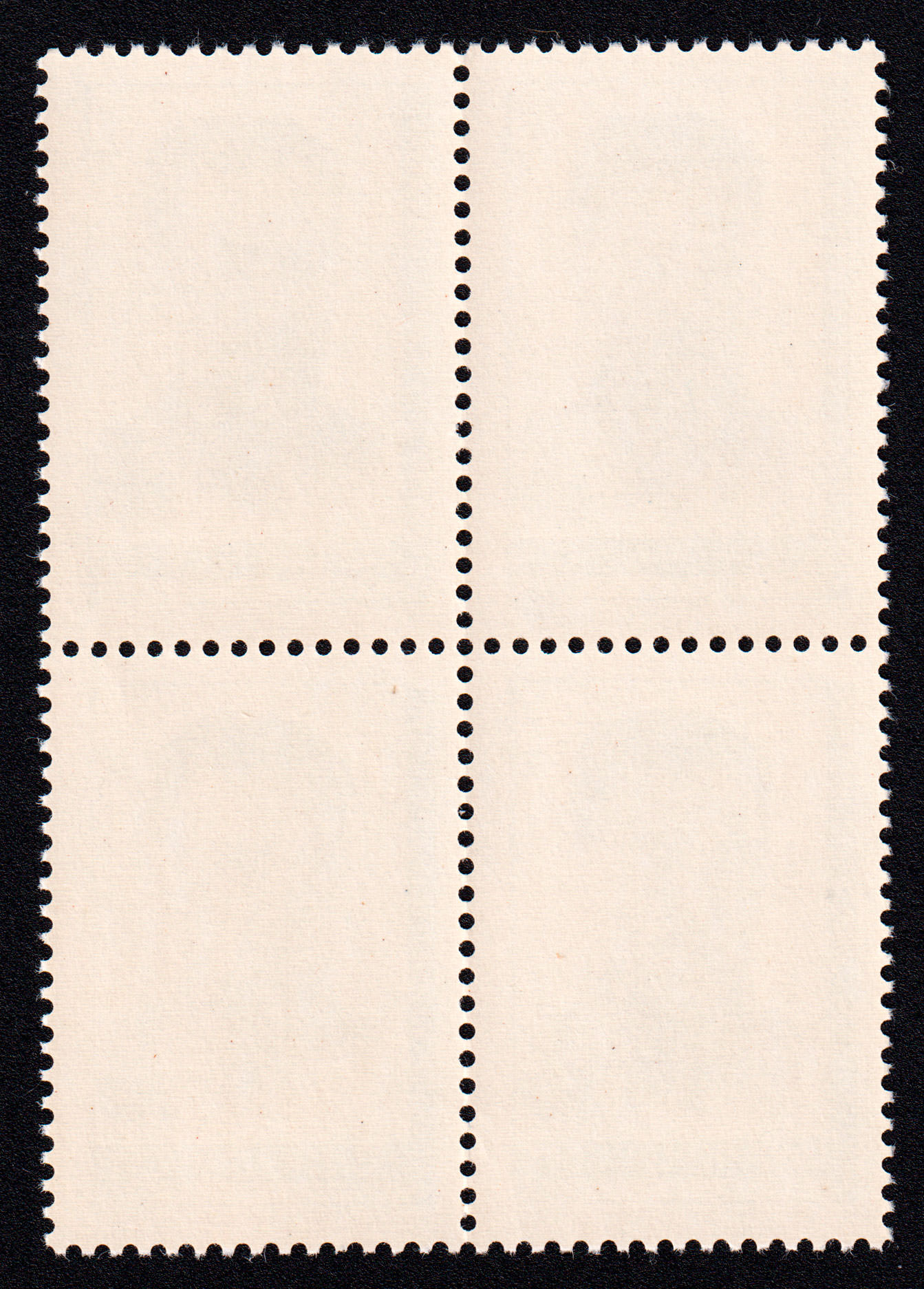 Квартблок. Кат. № 2801А. Принудительное (филателистическое) гашение, марки с клеем. Цвет: лилово-карминовая. Печать: металлография. Перфорация линейная 11 1/4. Бумага: плотная.