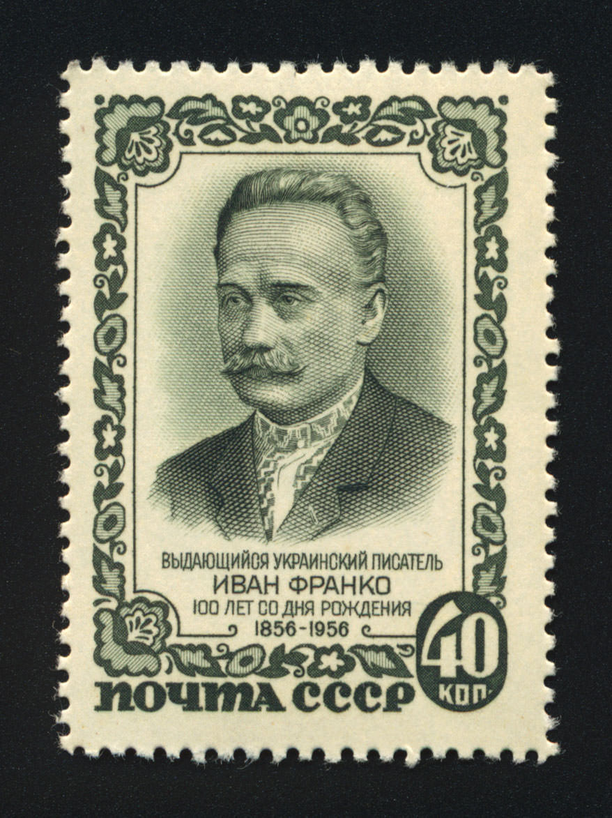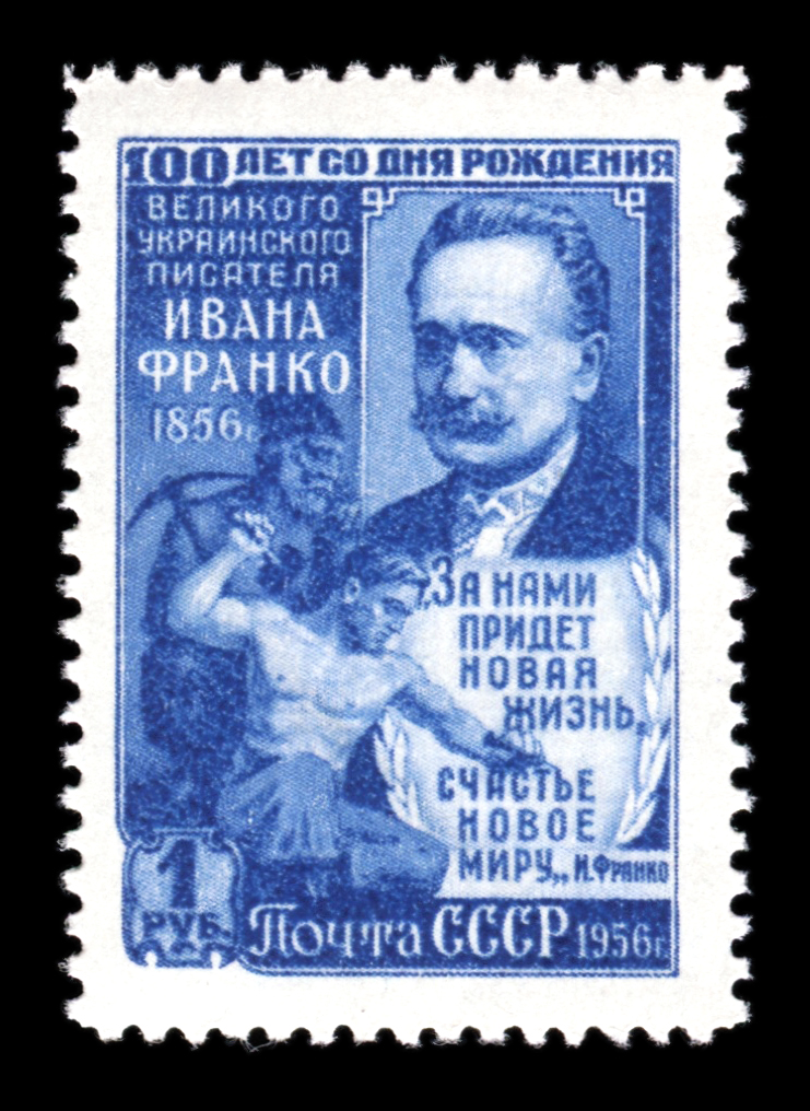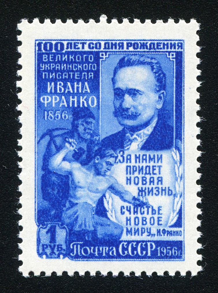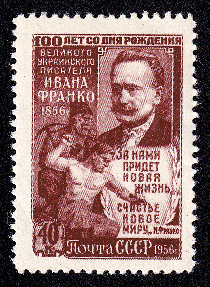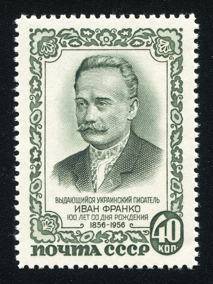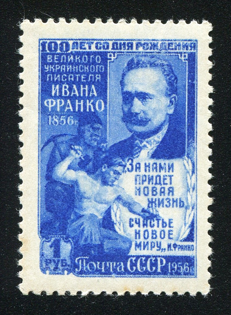 Кат. № 1838-1840. Серия. 1. 1840. Портрет И.Я. Франко, герои его произведений. 2. Портрет И.Я. Франко. Оформ. И. Дубасов, В. Завьялов. Печать: глубокая. Перфорация линейная 12 1/4.