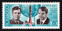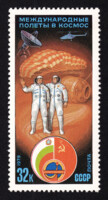 12) Земля, с орбитами космических кораблей. 1 р. Кат. № 4555. Цвет: синяя. Печать: металлография. Перфорация гребенчатая 12 1/2 : 12.