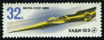 Серия: 5032. Газотурбинный автомобиль ХАДИ-7; 5033. Поршневой автомобиль ХАДИ-10; 5034. Электромобиль ХАДИ-11 Э; 5035. Электромобиль ХАДИ-13 Э. Худ. Ю. АрцименевПечать: офсет. Перфорация гребенчатая 12 1/2 : 12.
