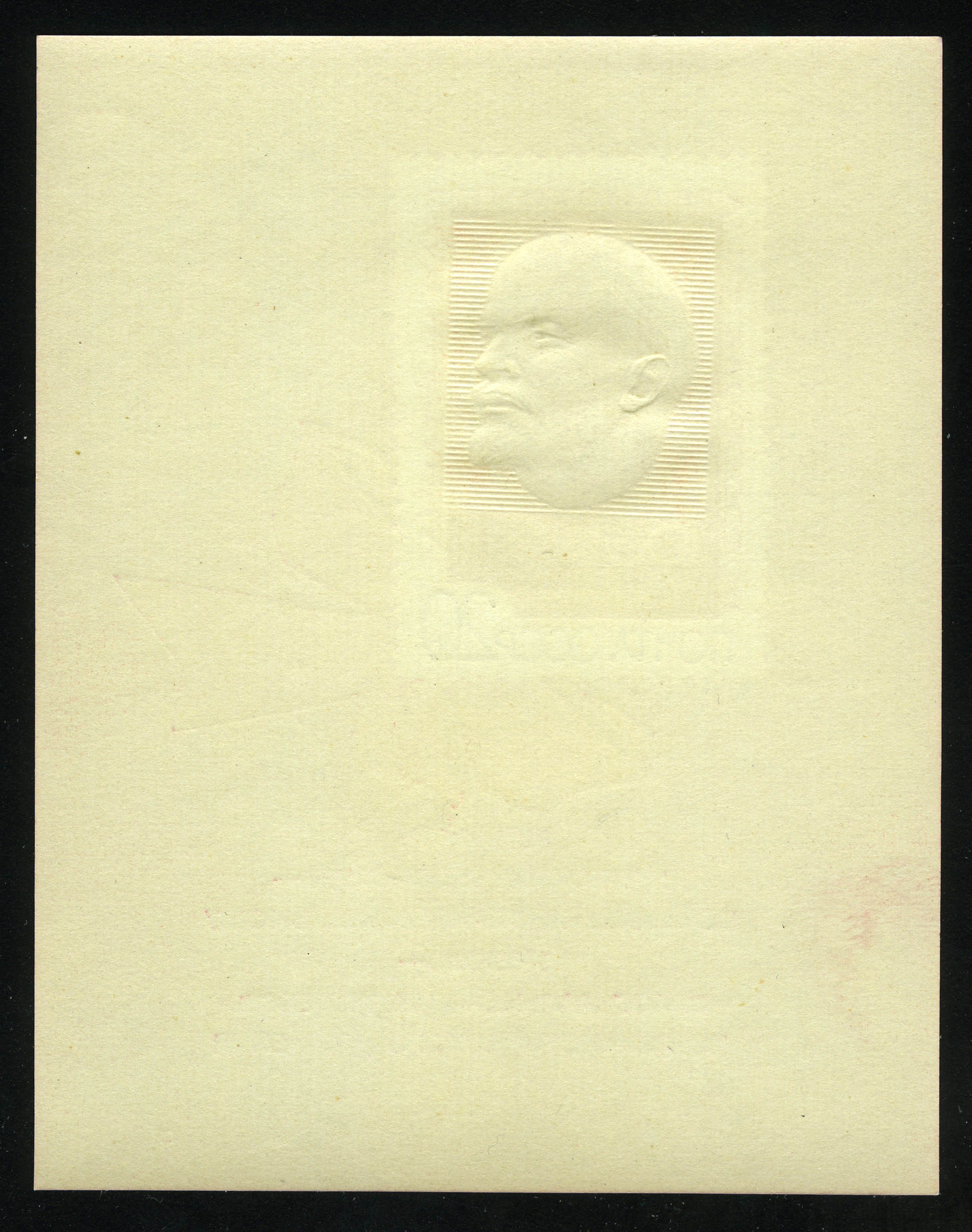 Кат. № Бл 65 I Ta. Бумага UV. Шрифт текста тонкий, чёткий. Размер 70 х 90 мм. Печать: типографская с конгревом, золотая паста. Бумага мелованная. Без перфорации.