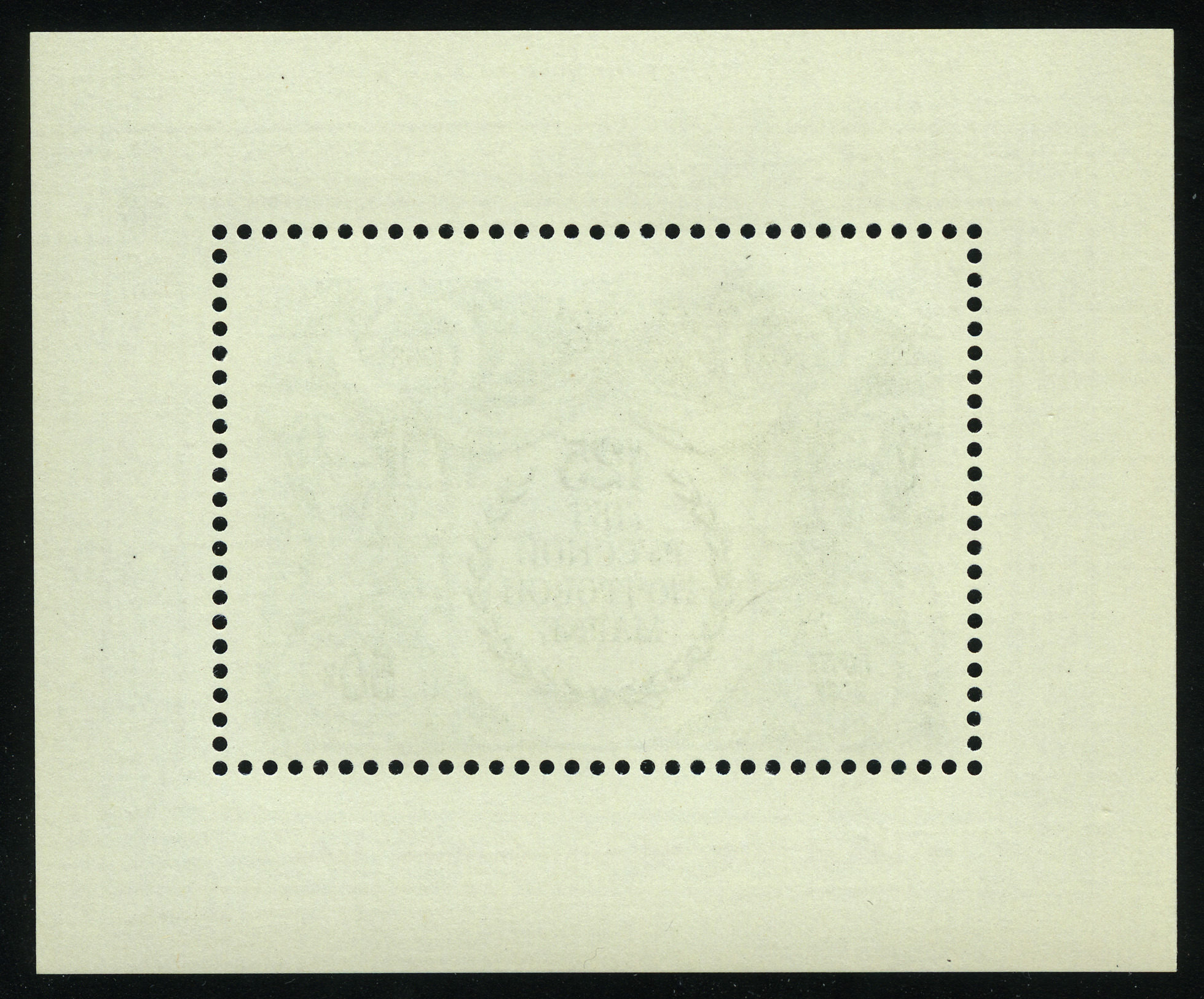 Кат. № Бл 179. Размер 60 х 80 мм. Тираж – 1 500 000. Печать: глубокая с серебряной пастой. Перфорация рамочная 11 1/2 : 12.