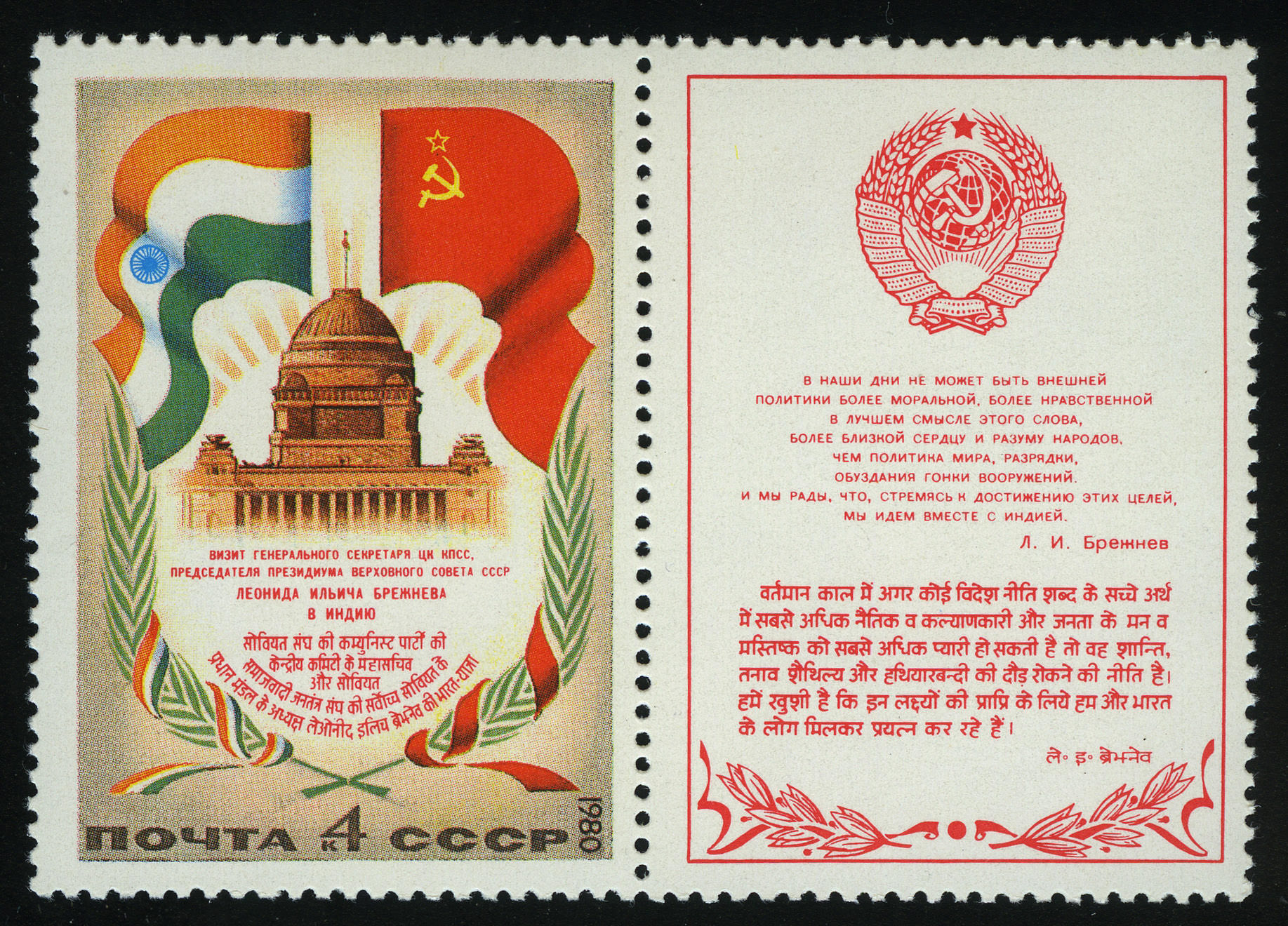 Государственные флаги Индии и СССР. Дворец Раштрапати Бхаван в Новом Дели. Худ. И. Мартынов, Н. Черкасов.