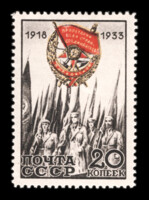 Кат. № 333. Тираж – 200 000. Цвет: красная. Печать: фототипия. Водяной знак – Wm 11a. Перфорация гребенчатая 12 : 10 1/4.