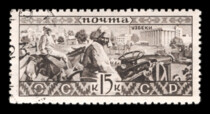 Кат. № 329. Тираж – 200 000. Цвет: лилово-коричневая. Печать: фототипия. Водяной знак – Wm 11a. Перфорация гребенчатая 10 1/4 : 12.