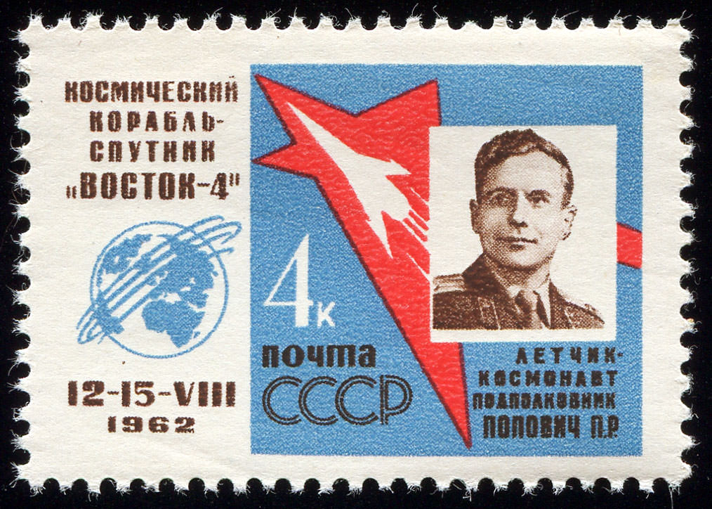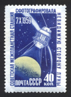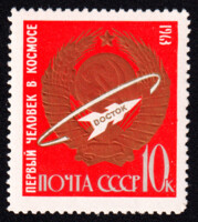 5) Кат. № 2760. Советская АМС. Космический корабль «Восток». 10 к. Цифры номинала цветные.