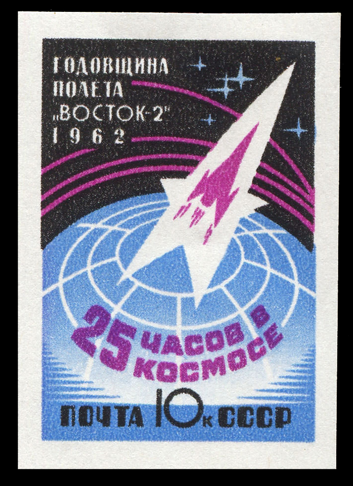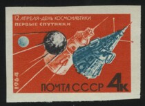 2) Кат. № 2757. Советская АМС. Космический корабль «Восток». 10 к. Цифры номинала белые.