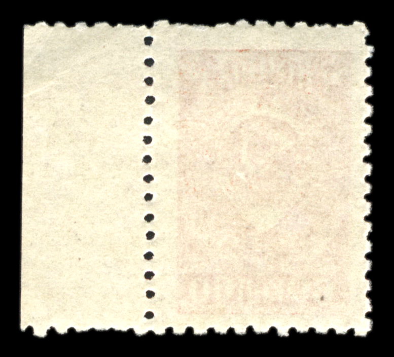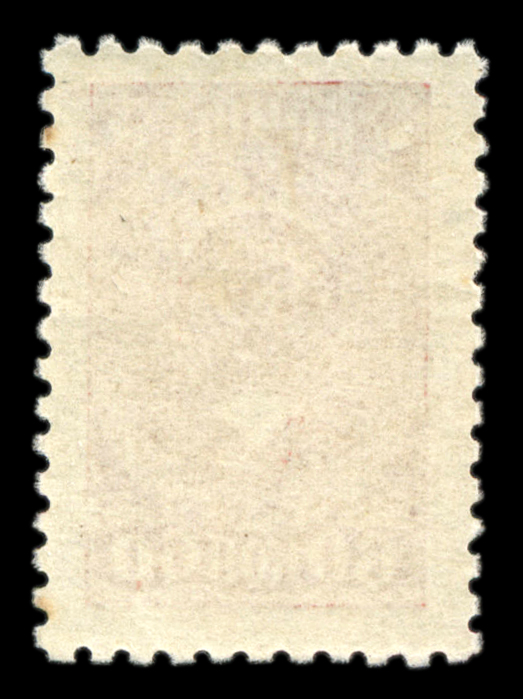 Кат. № 16. Тираж массовый. Цвет: карминная. Печать: литография, oWmk – без водяного знака. Без перфорации.