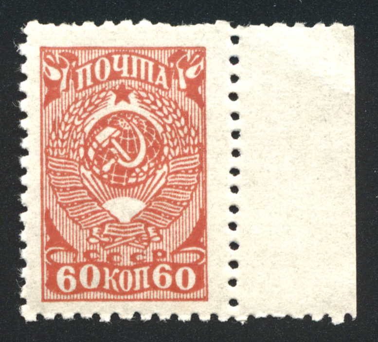 Кат. № 469. Разновидность: черта справа. Тираж – 3 512 000. Цвет: желто-коричневая. Печать: типографская. oWm – без водяного знака. Перфорация линейная 12 1/4. Бумага: БМ – бумага мелованная.