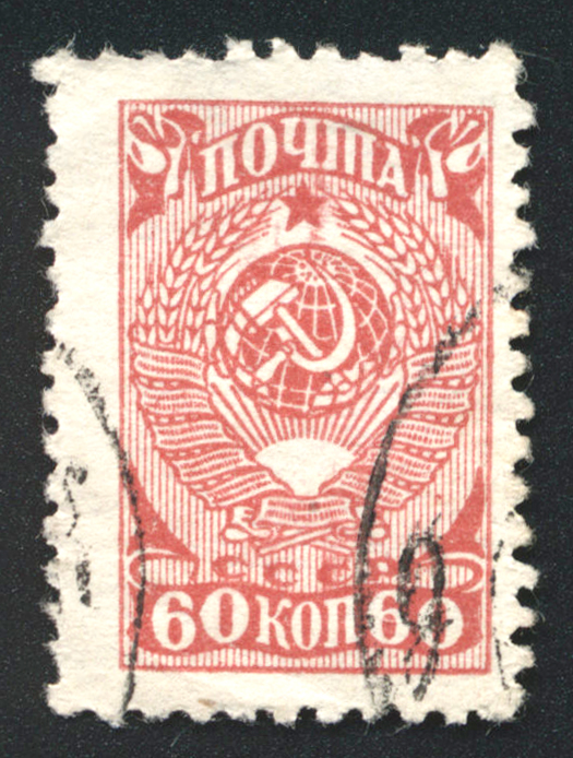 Кат. № 761. Тираж массовый. Цвет: кирпично-красная. Печать: типография. Перфорация гребенчатая 11 3/4 : 12 1/4. Бумага: простая.