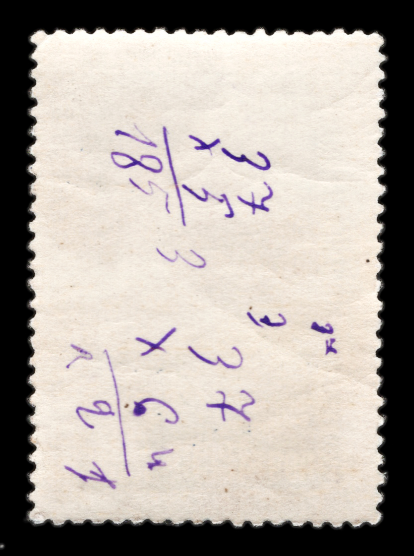 Кат. № 152 Td. Разновидность: сдвиг центра. Печать: типография. Бумага: с вертикальной меловой сеткой, без водяного знака. Без перфорации.