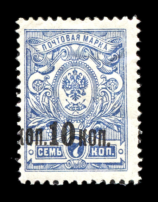 Надпечатка типографская черного цвета пятиконечной звезды с серпом и молотом и нового номинала на марке 151 (1917 г. ).