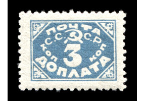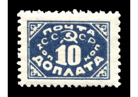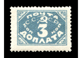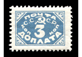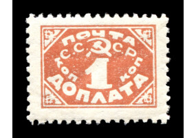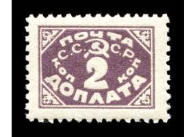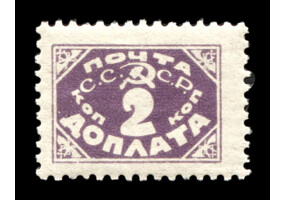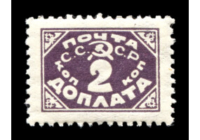 Кат. № D30PP. Бумага: папиросная. Надпечатка ручным штемпелем фиолетового цвета "ДОПЛАТА 1 КОП." на марке РСФСР 8PP.