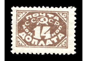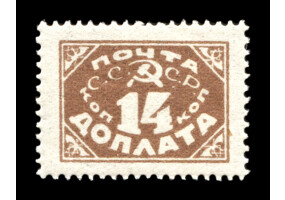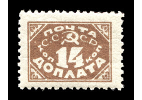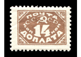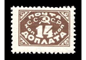 Кат. № D7. Надпечатка типографская кирпично-красная "ДОПЛАТА ... КОП. ЗОЛОТОМ" на марке РСФСР 1. 14 к./35 к.