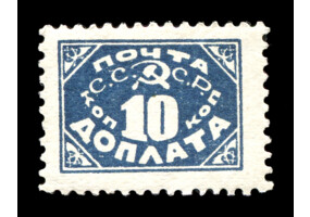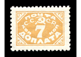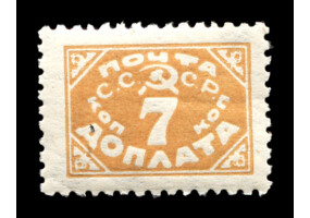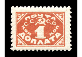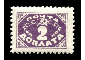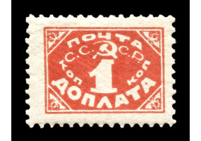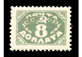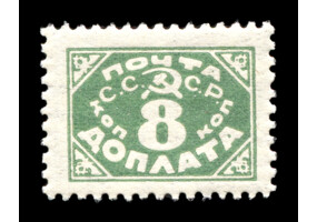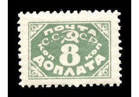 Кат. № D30. Надпечатка ручным штемпелем фиолетового цвета "ДОПЛАТА 1 КОП." на марке РСФСР 8.
