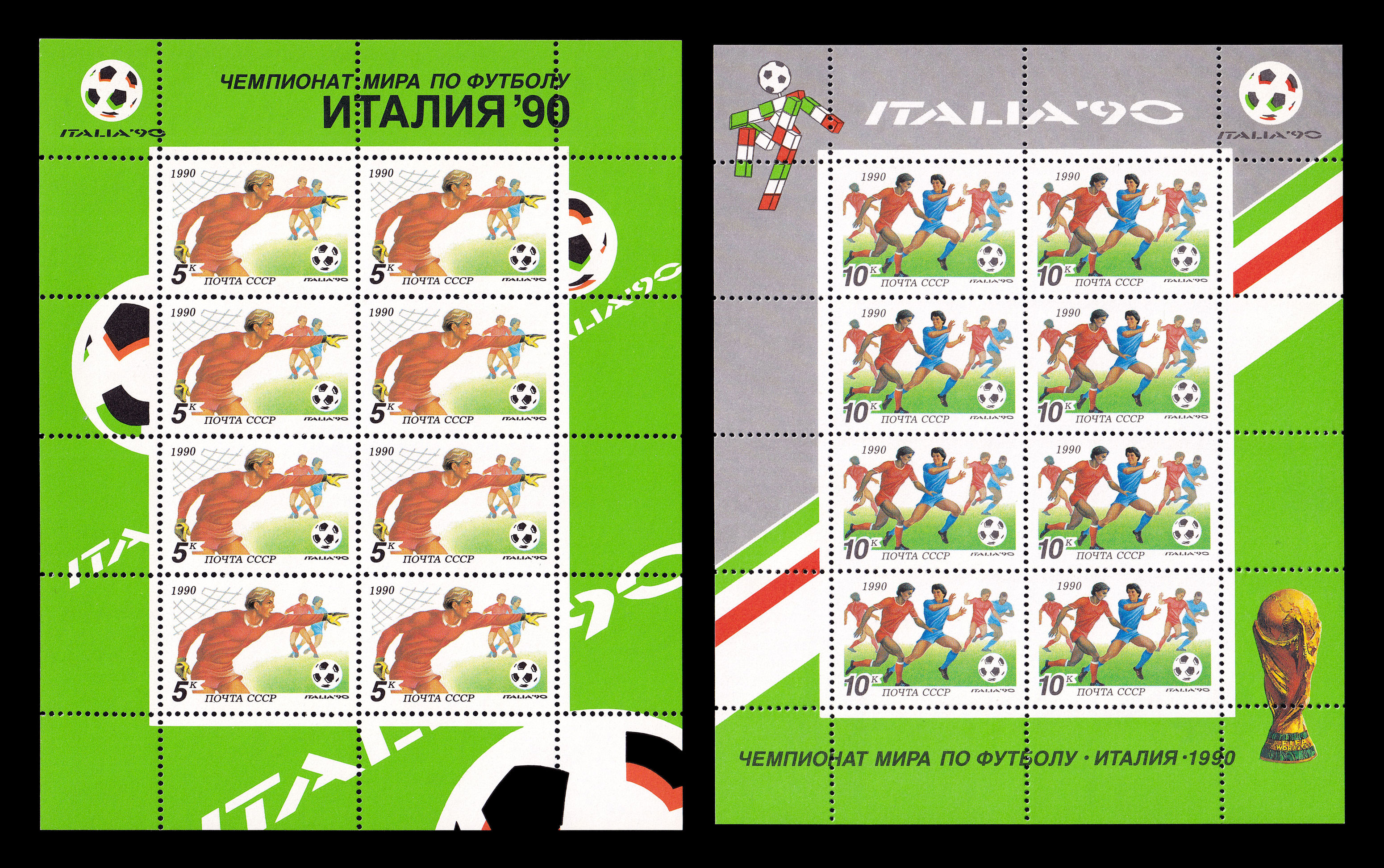 Комплект 4 малых листа (4 х 2). Надпечатка текста: «Международная выставка «К звёздам-91» Космос на службе мира и прогресса» на полях.
