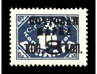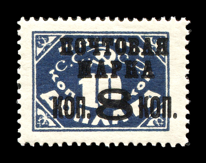 Кат. № 164 I A. Тип I. Надпечатка типографская черная "ПОЧТОВАЯ МАРКА к. 8 к. " на марке D13 A. 8 к. /7 к. Цвет: желтая. Печать: литография. oWmk – без водяного знака. Перфорация рамочная 14 3/4 : 14 1/2.