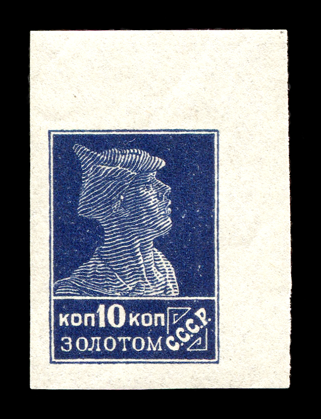 Кат. № 19. Тираж массовый. Цвет: темно-синяя. Печать: литография. oWmk – без водяного знака. Без перфорации.