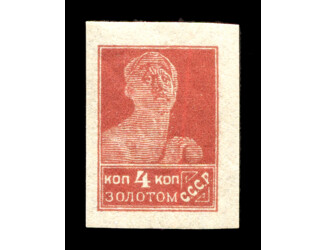 Кат. № 16. Тираж массовый. Цвет: карминная. Печать: литография, oWmk – без водяного знака. Без перфорации.