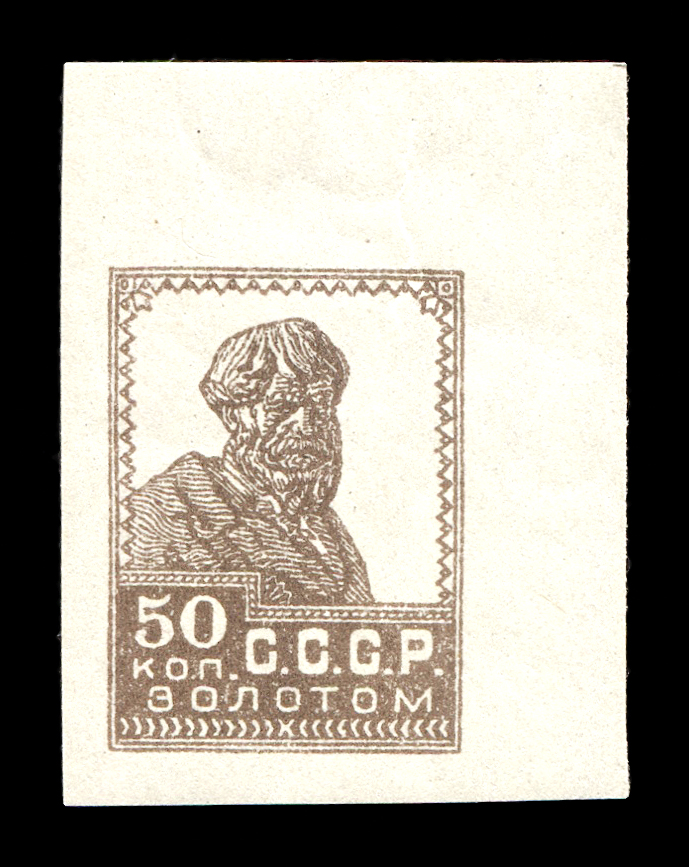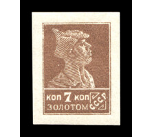 Кат. № 21. Тираж массовый. Цвет: коричневая. Печать: литографская, oWmk – без водяного знака. Без перфорации.