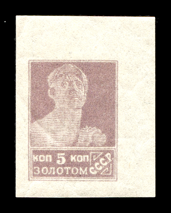 Кат. № 17. Тираж массовый. Цвет: лиловая. Печать: литографская, oWmk – без водяного знака. Без перфорации.