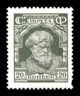 Кат. № 197. Тираж массовый. Цвет: оливково-зеленая. Печать: типографская, oWmk – без водяного знака. Перфорация рамочная 13 1/2. Бумага: БМ – бумага мелованная.