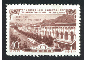 1) Тбилиси. Театр оперы и балета. 20 к. Кат. № 1513. Тираж – 1000 000. Цвет: зеленая. Печать: глубокая. Растр КВ (квадрат). Перфорация линейная 12 1/2. Бумага: тонированная. Потертости на клеевом слое.
