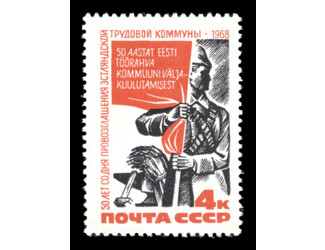 Кат. № 3616 Ka. Разновидность: недопечатан молоток. Печать: глубокая. Перфорация гребенчатая 12 : 12 1/2.