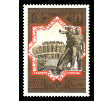 3) Скульптура "Рабочий и колхозница". 3 к. Кат. № 4681. Тираж – массовый. Цвет: лилово-красная. Печать: офсет. Перфорация гребенчатая 12 : 12 1/2. Бумага простая.