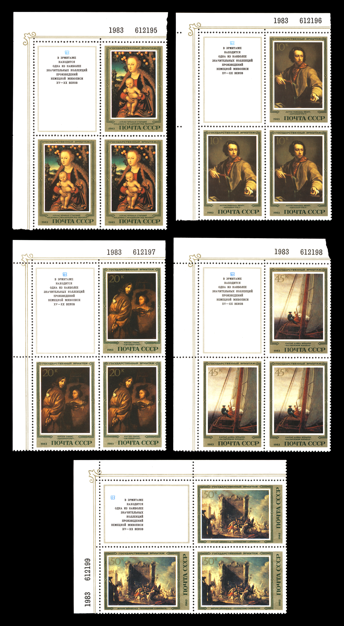 - Лукас Кранах Старший (1472-1553). "Мадонна с младенцем под яблоней". 4 к. Кат. № 5381. Тираж – 4 900 000. Перфорация гребенчатая 12 : 12 1/2.