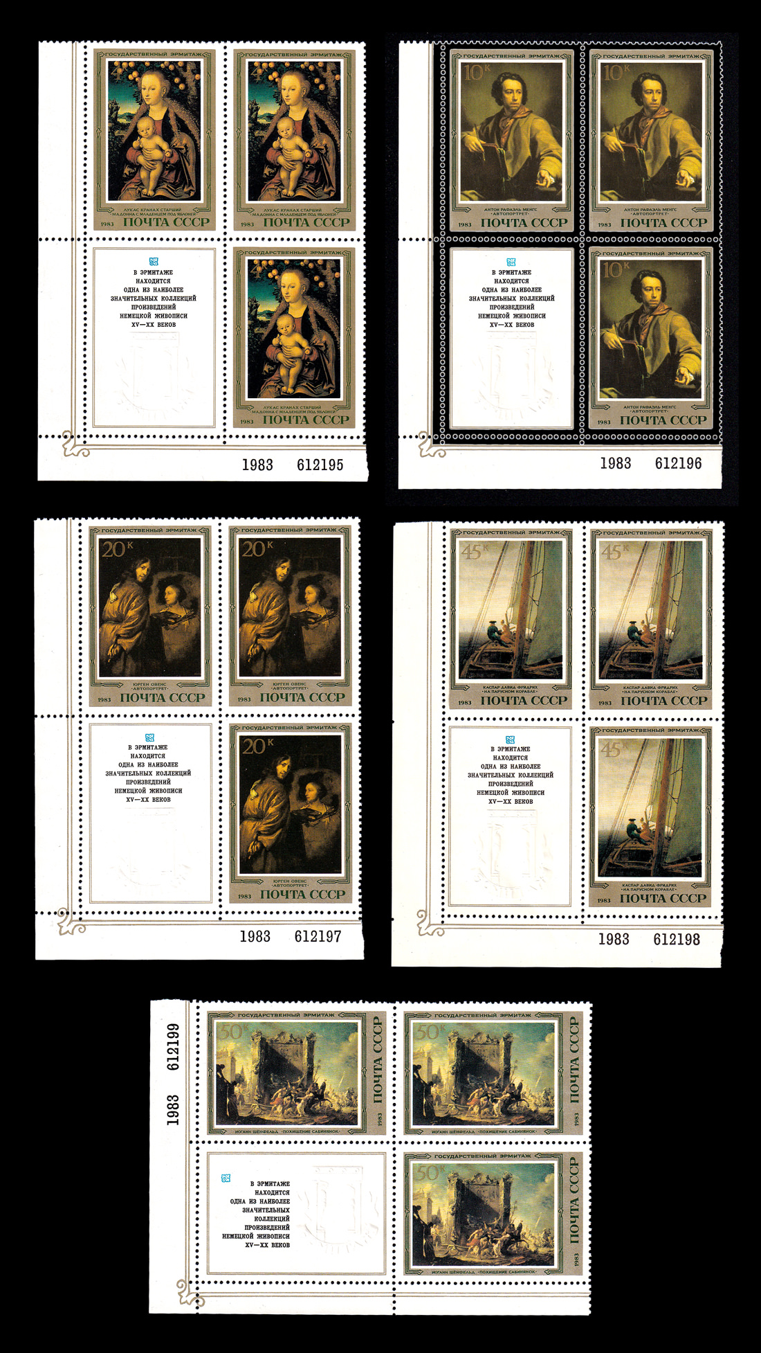 8). "Автопортрет". 20 к. Кат. № 5383. Тираж – 4 400 000. Перфорация гребенчатая 12 : 12 1/2. - Каспар Давид Фридрих (1774-1840). "На парусном корабле". 45 к. Кат. № 5384. Тираж – 3 700 000. Перфорация гребенчатая 12 : 12 1/2.