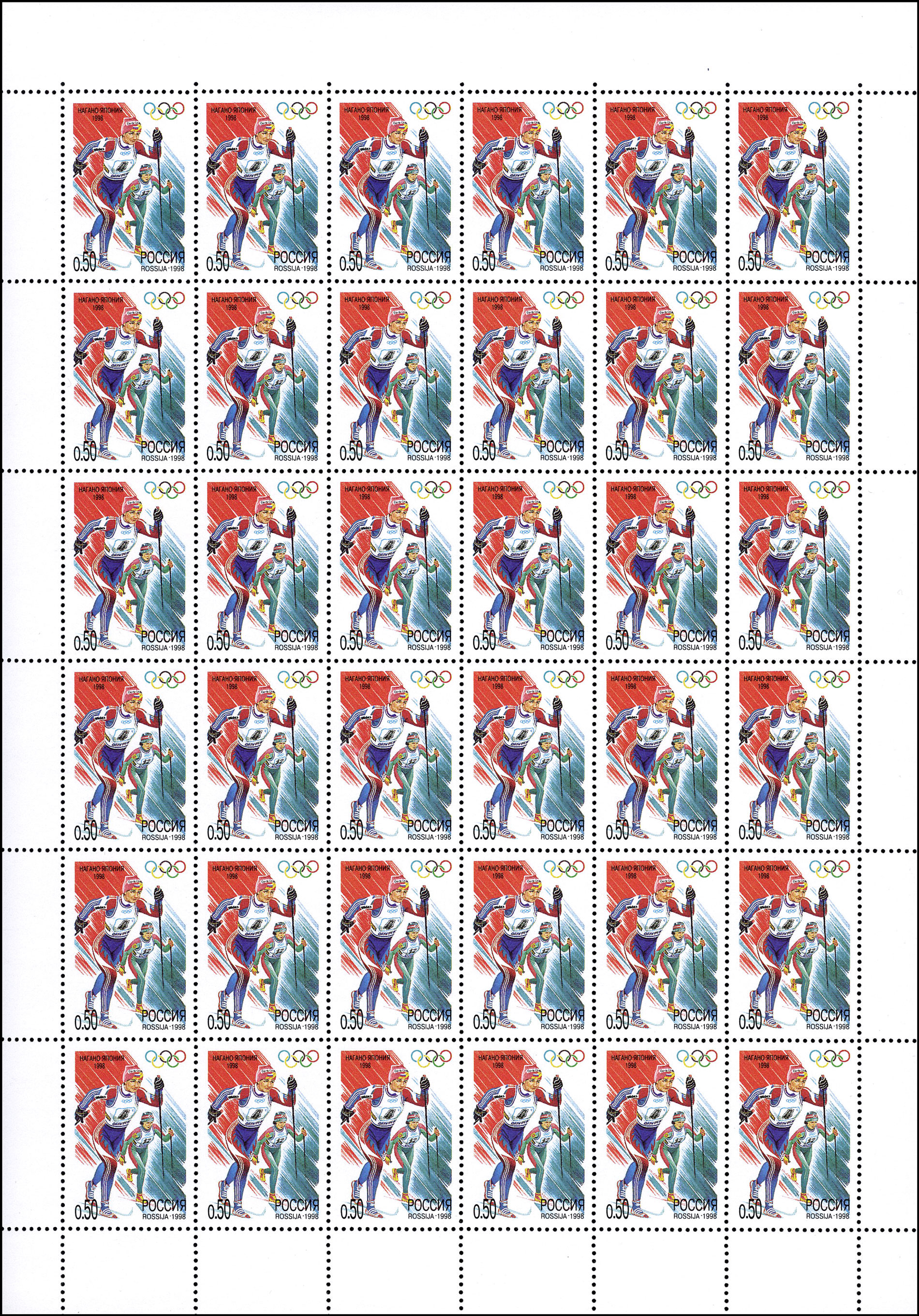 Малый лист 6 марок (3 х 2). Кат. № 1409. Тираж – 90 000. Печать: офсетная. Перфорация гребенчатая 12 : 12 1/2.