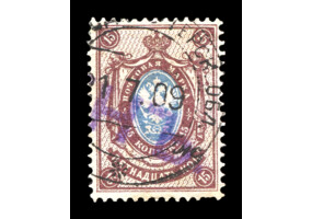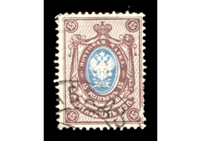 Кат. № 15. Печать: типографская. oWm. Перфорация: рамочная 14 1/4 : 15. Бумага мелованная.