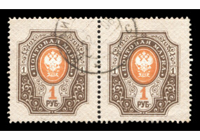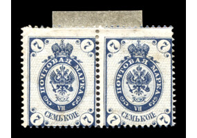 Кат. № 91. Пара. Разновидность не описана в каталоге: сдвиг перфорации. Печать: типографская. Wm 4b. Перфорация: рамочная 14 1/4 : 14 3/4.