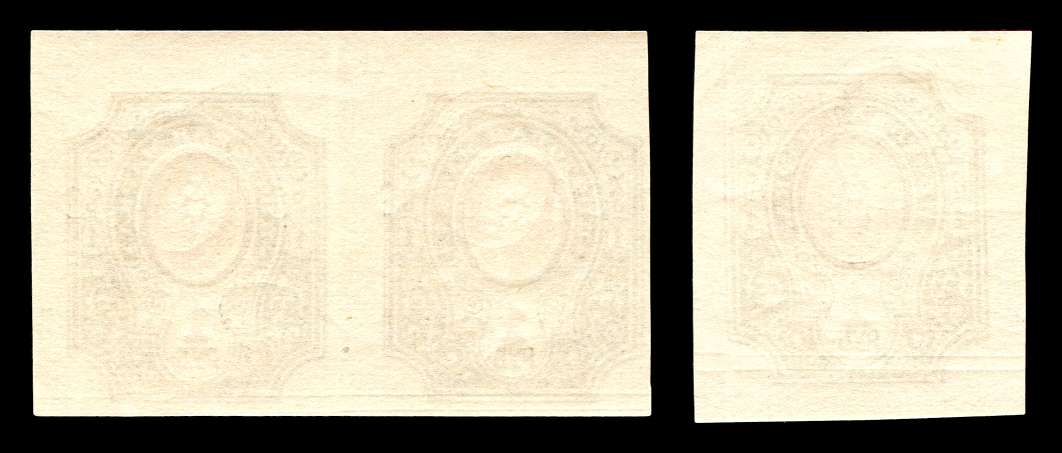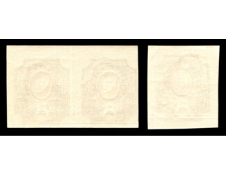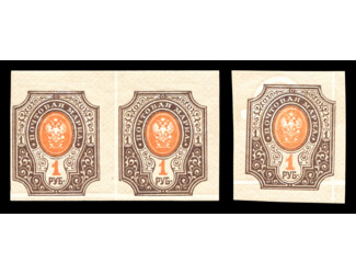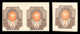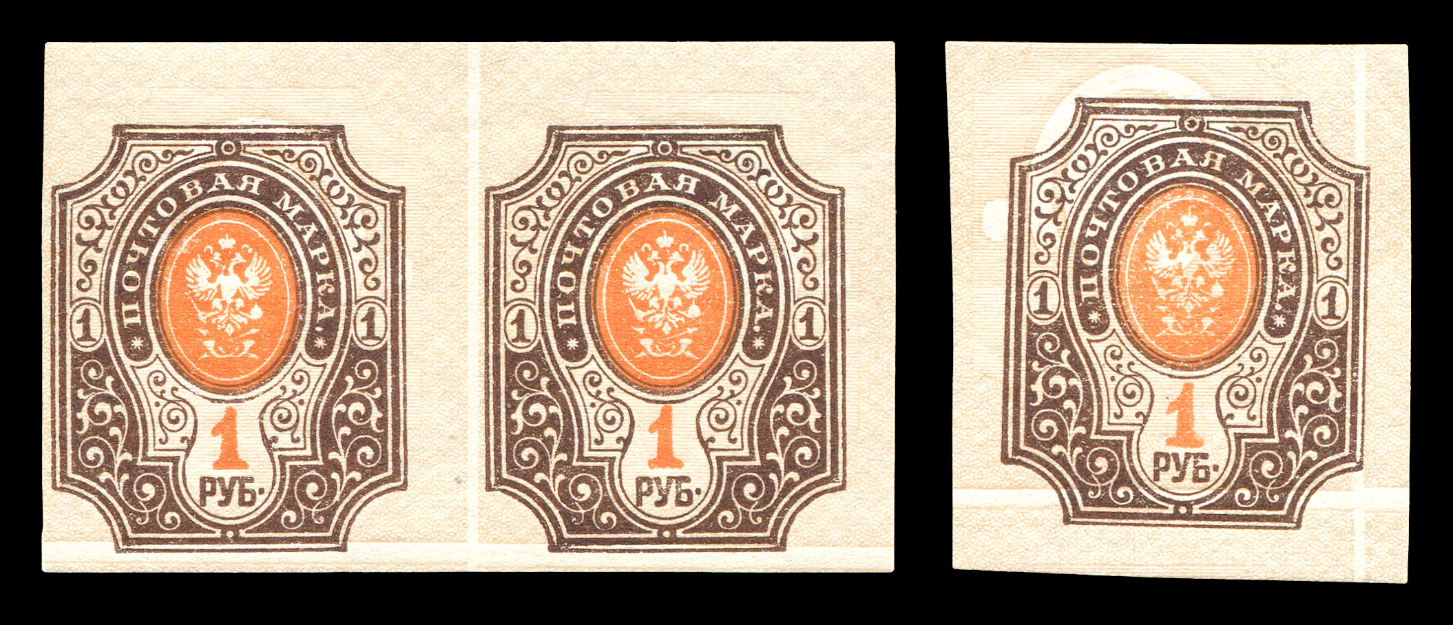 Кат. № R07 Tl. Пара марок и марка со сдвигом фона. Цвет: темно-коричневая, оранжевая. Печать: типографская. Бумага: с гориз. меловой сеткой, oWm. Без перфорации.