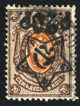 Надпечатка литографская черного цвета пятиконечной звезды с серпом и молотом и нового номинала на марке 102 РИ.