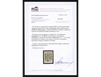 Надпечатка типографская текста «РСФСР Филателия – детям 19-8-22» черного цвета по вертикали снизу вверх на марке 95 РИ.