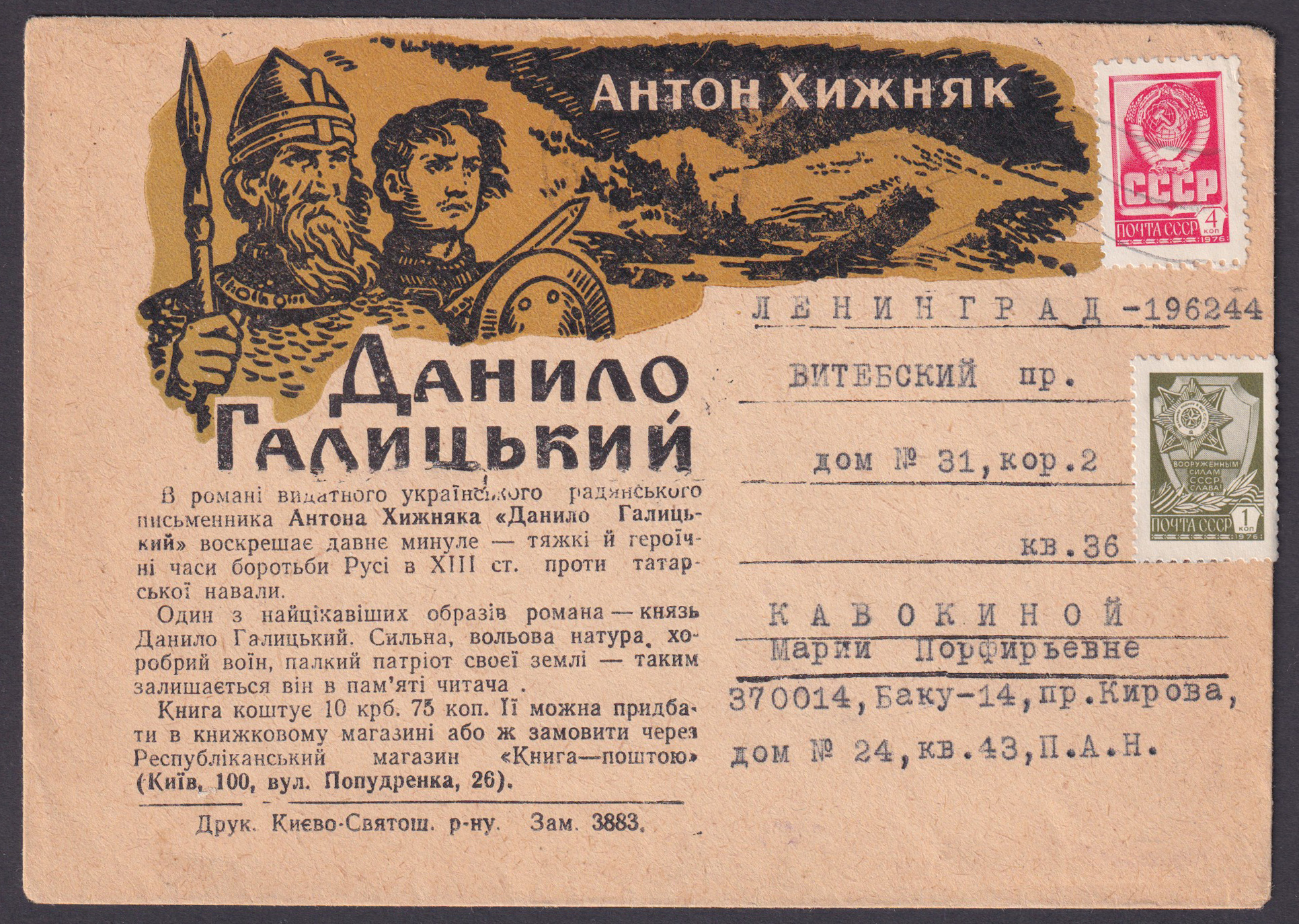 Отправление из Ленинграда в Баку 14.12.85 на рекламном конверте с изображением Данило Галицкого.
