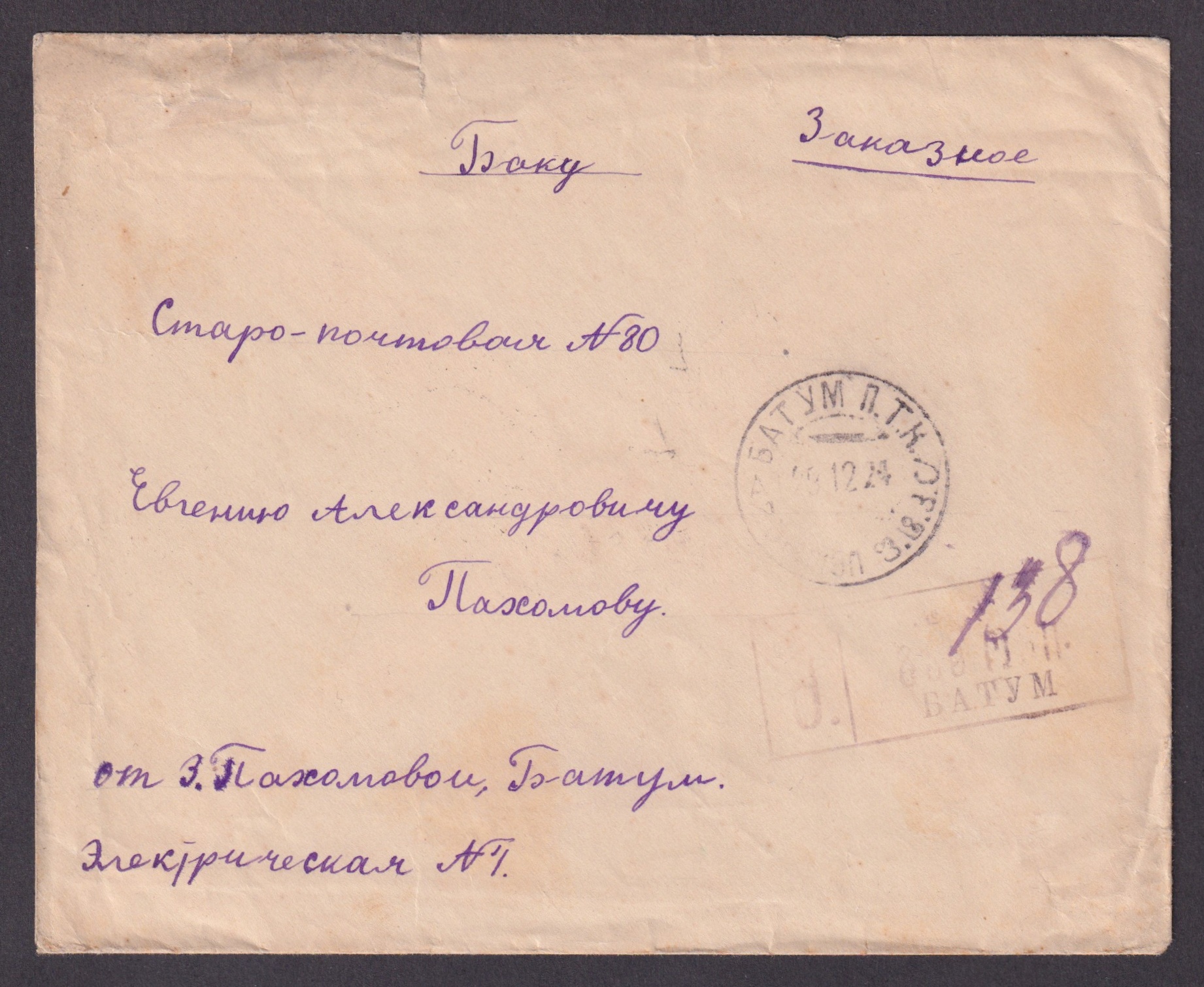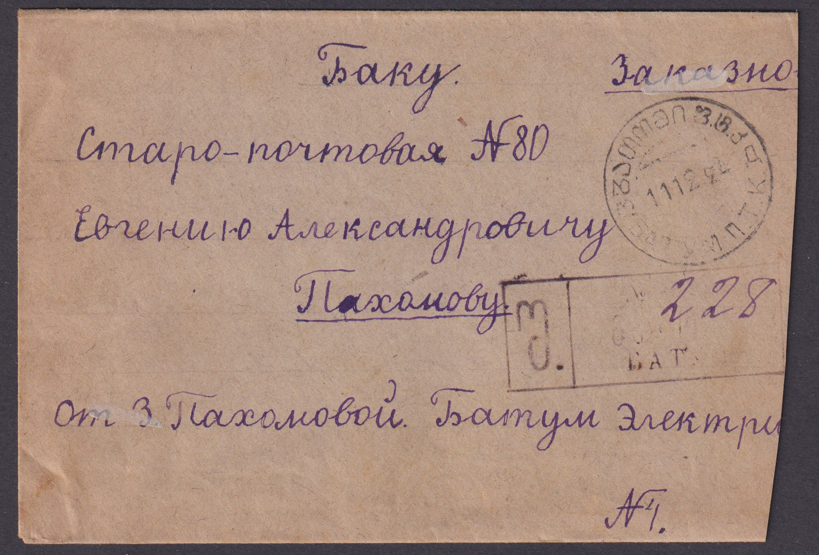 СССР. Заказное письмо из Батума. 11.12.24. в Баку. 13.12.24.