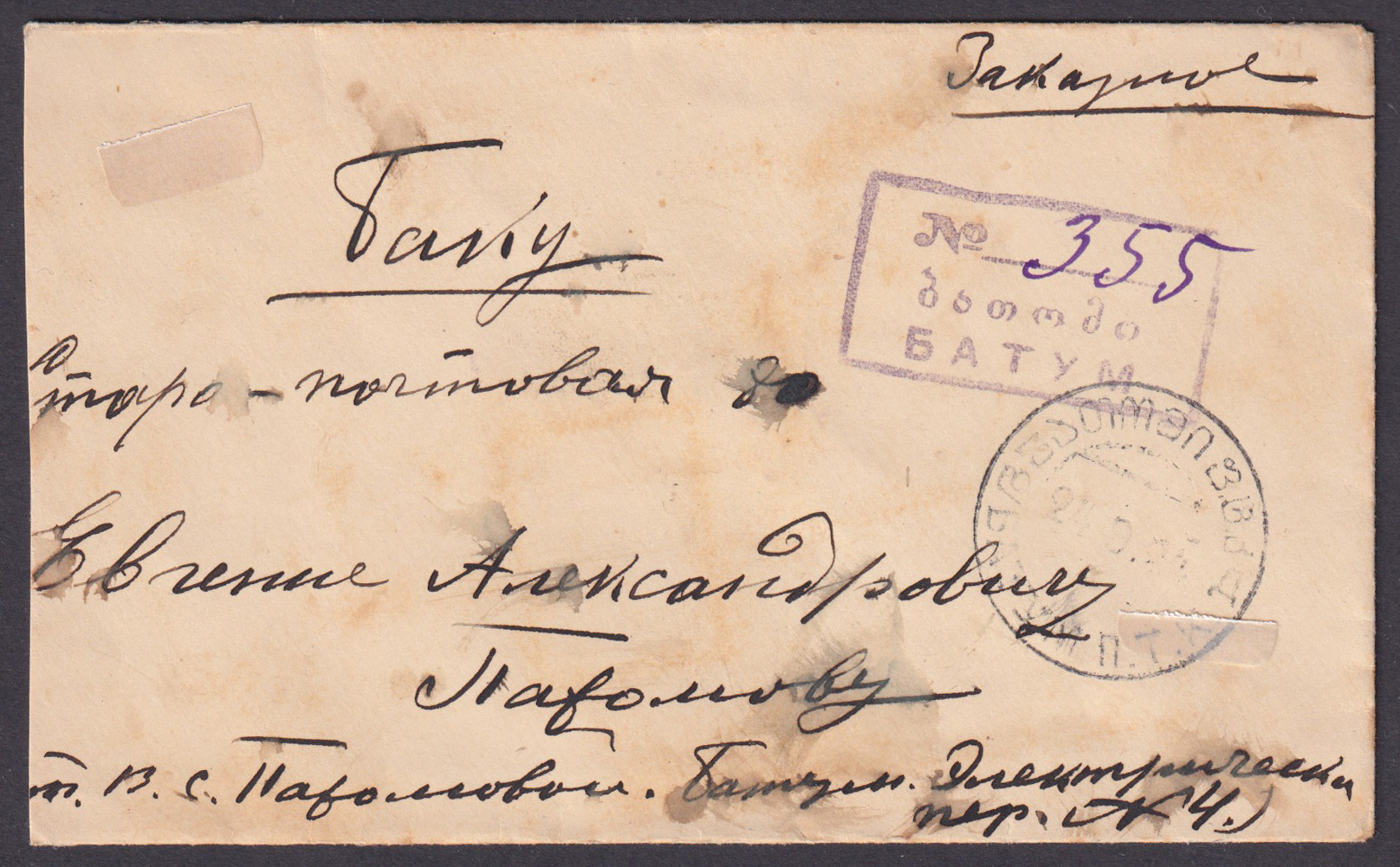 СССР. Почтовое отправление из Батума Штемпель двуязычный.