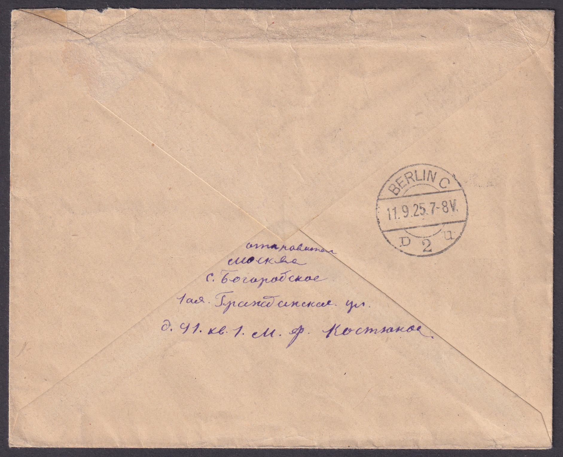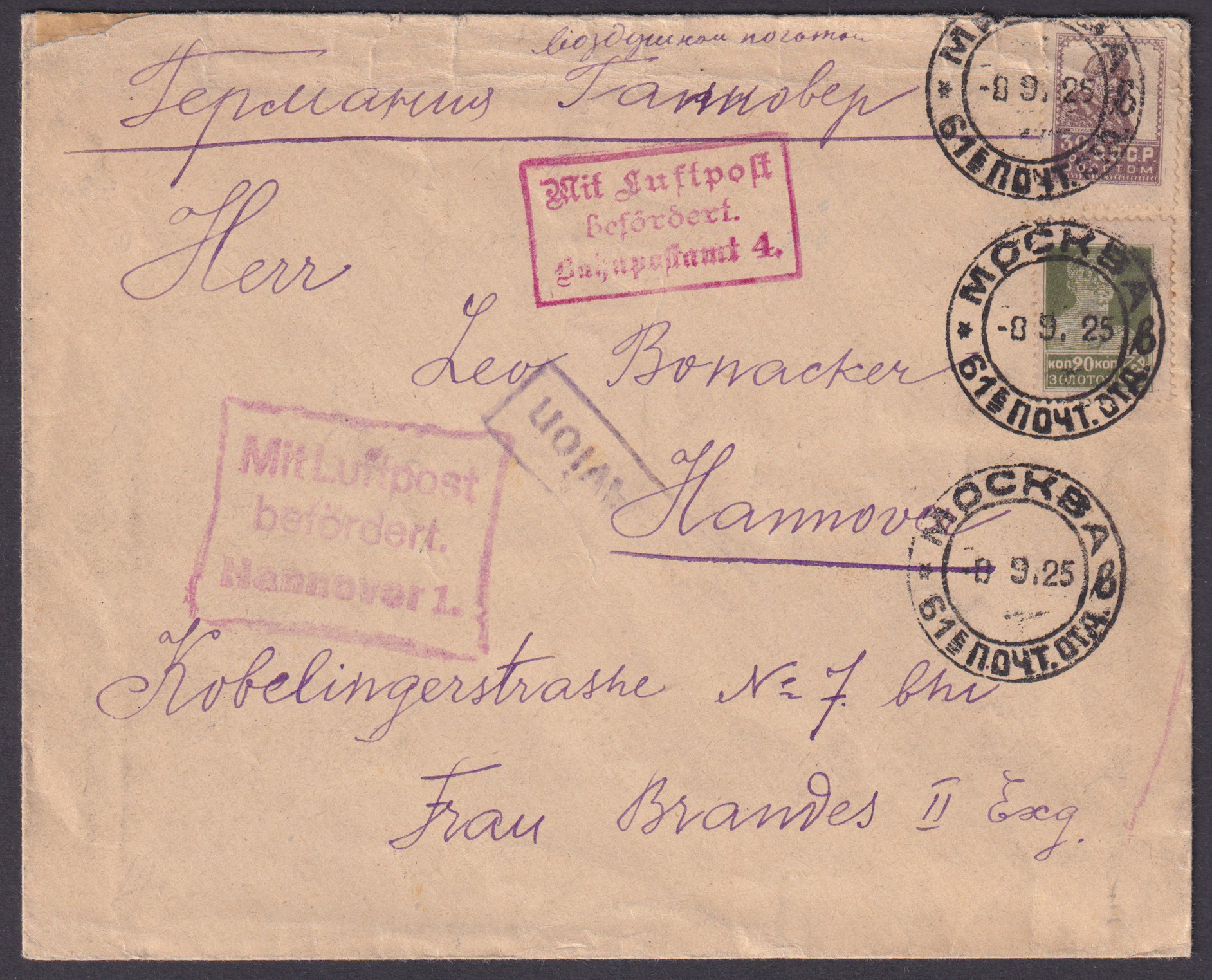 СССР. Воздушная почта. Отправление из Москвы 08.09.25 в Ганновер, через Берлин 11.09.25.