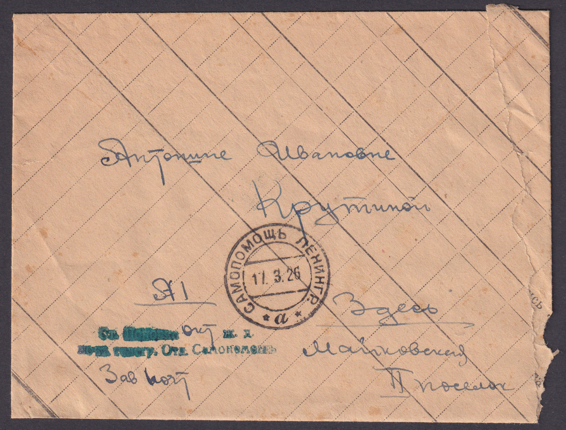 СССР. «САМОПОМОЩЬ». Местное отправление со станции Поповка. Окт. ж/д почт.-телеграф. отдел 17.03.26.