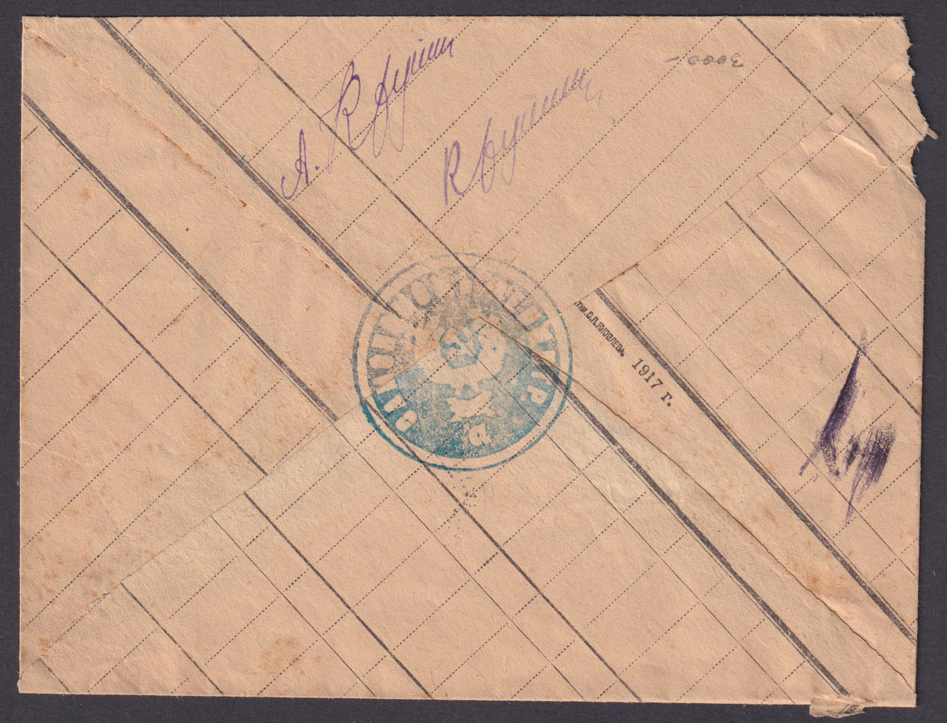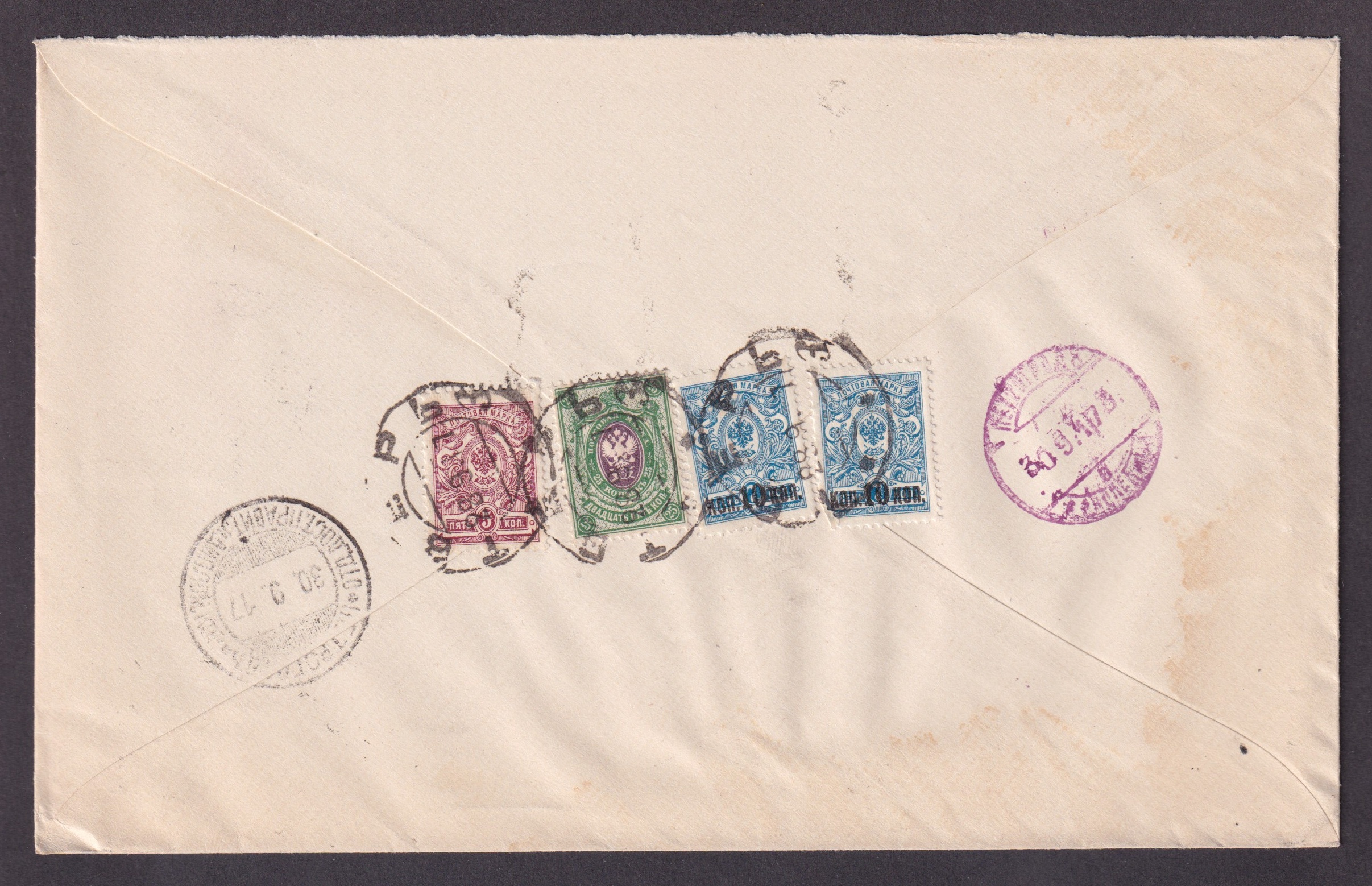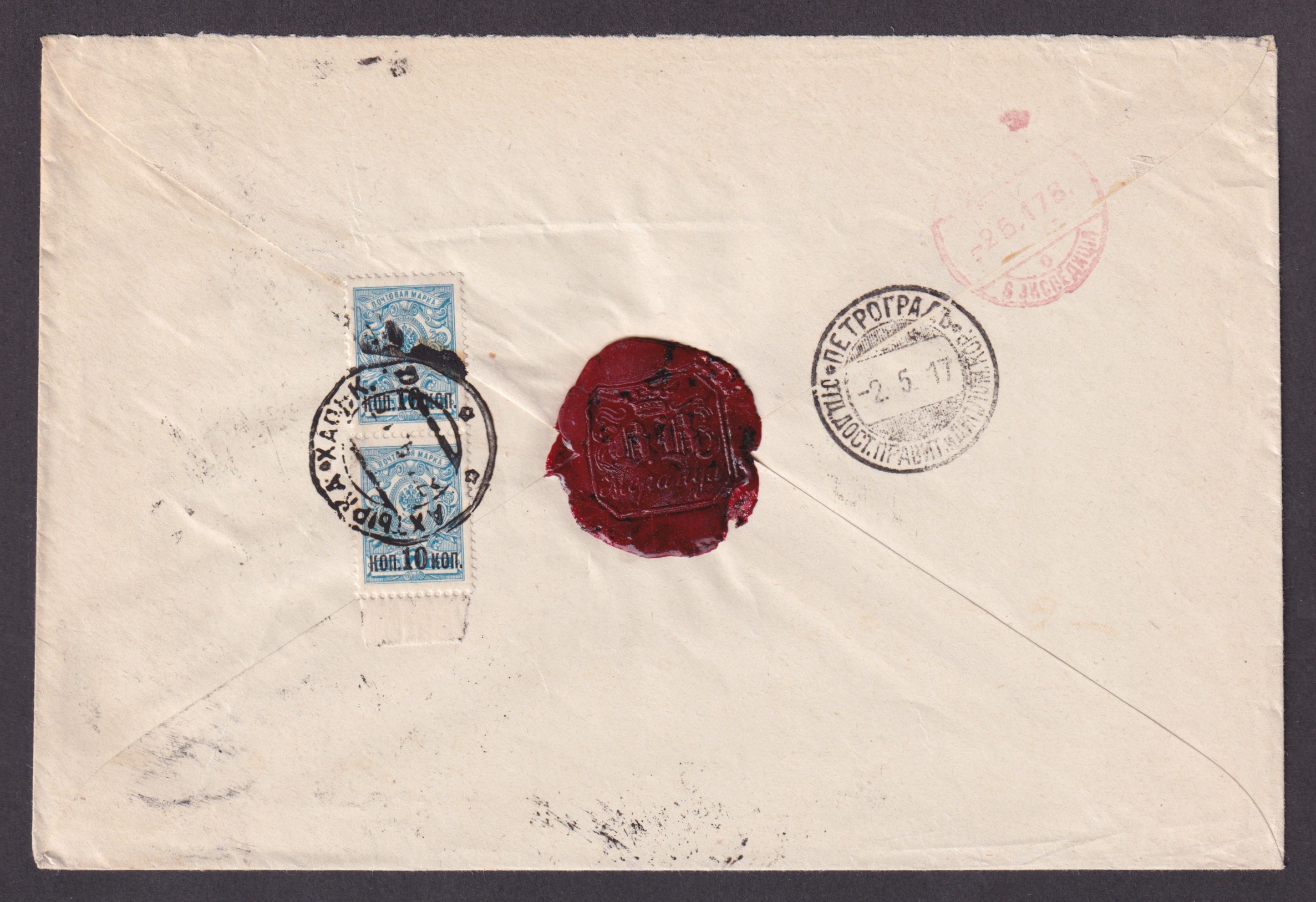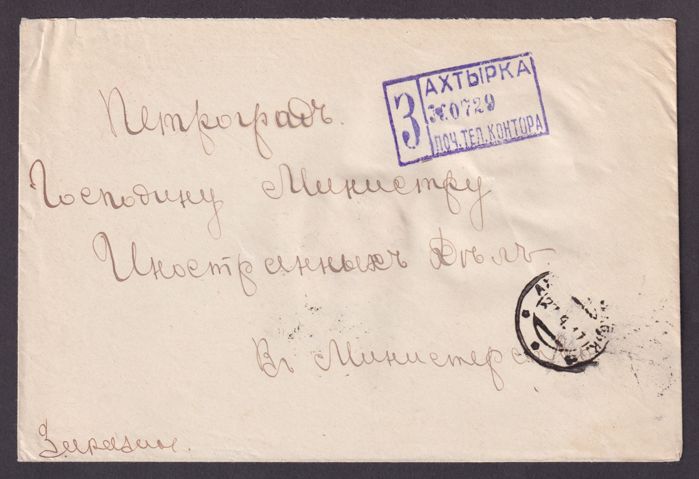 Российская империя. Заказное письмо из Ахтырки в Петроград со штампом «Отд. дост. правит и диплом кор».