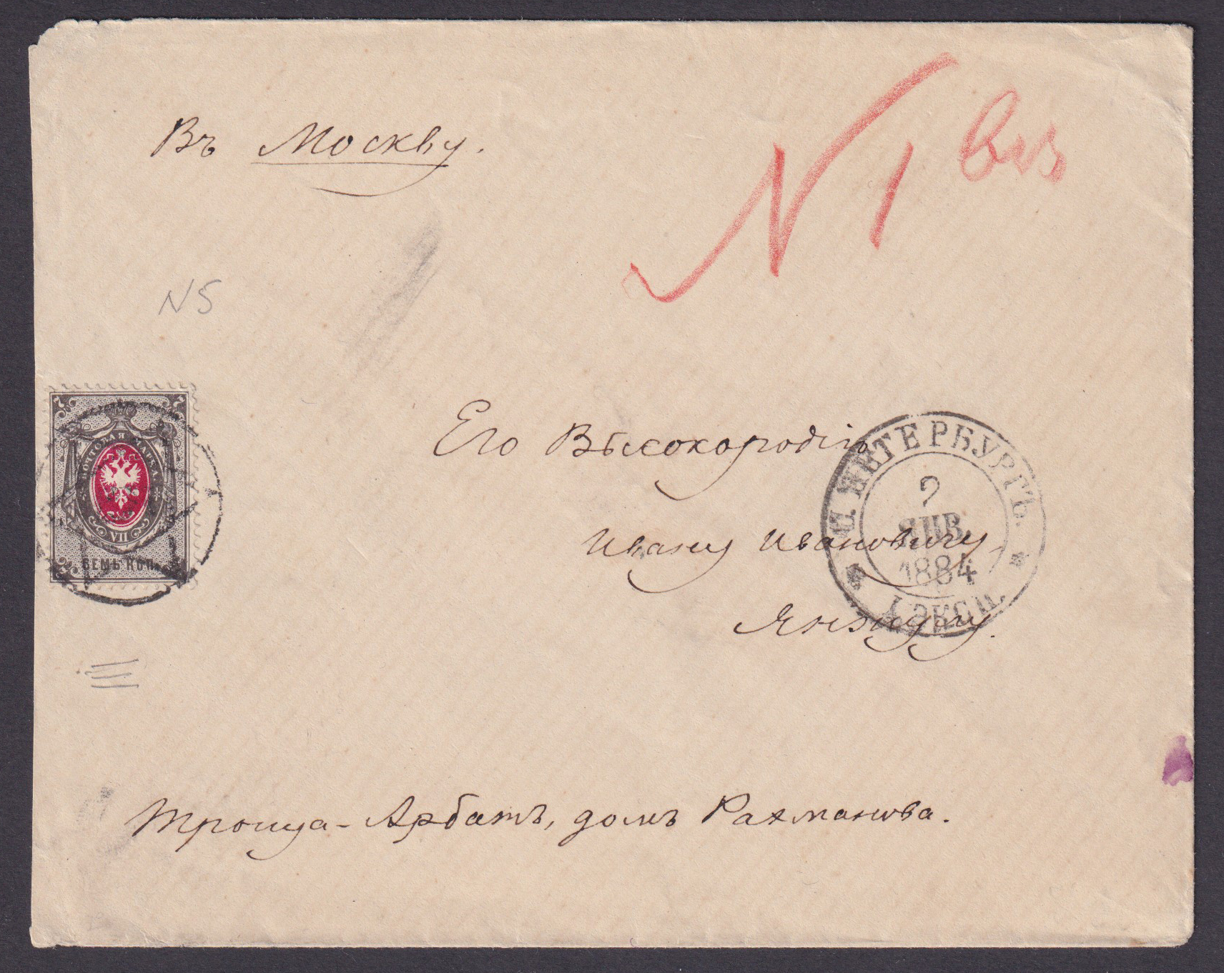 Российская империя. Почтовое отправление из Москвы в Санкт-Петербург.