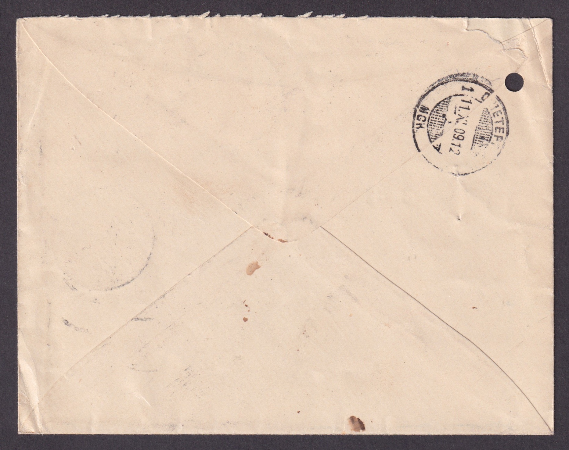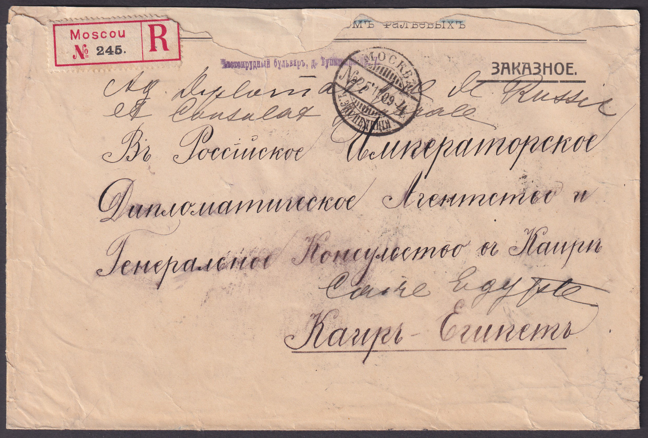 Российская империя. Заказное письмо из Москвы 25.11.09 (1-ая экспедиция) в Каир, Египет 15.12.09.