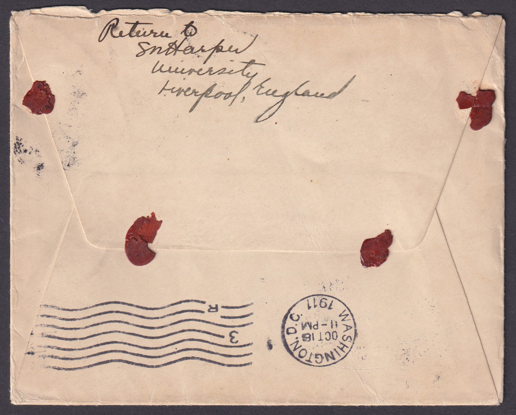 Отправление из СПб 22.09.11 в Вашингтон 18.10.11. Транзитная отметка в Нью-Йорке 17.10 и доплатная марка по прибытии номиналом 10с.