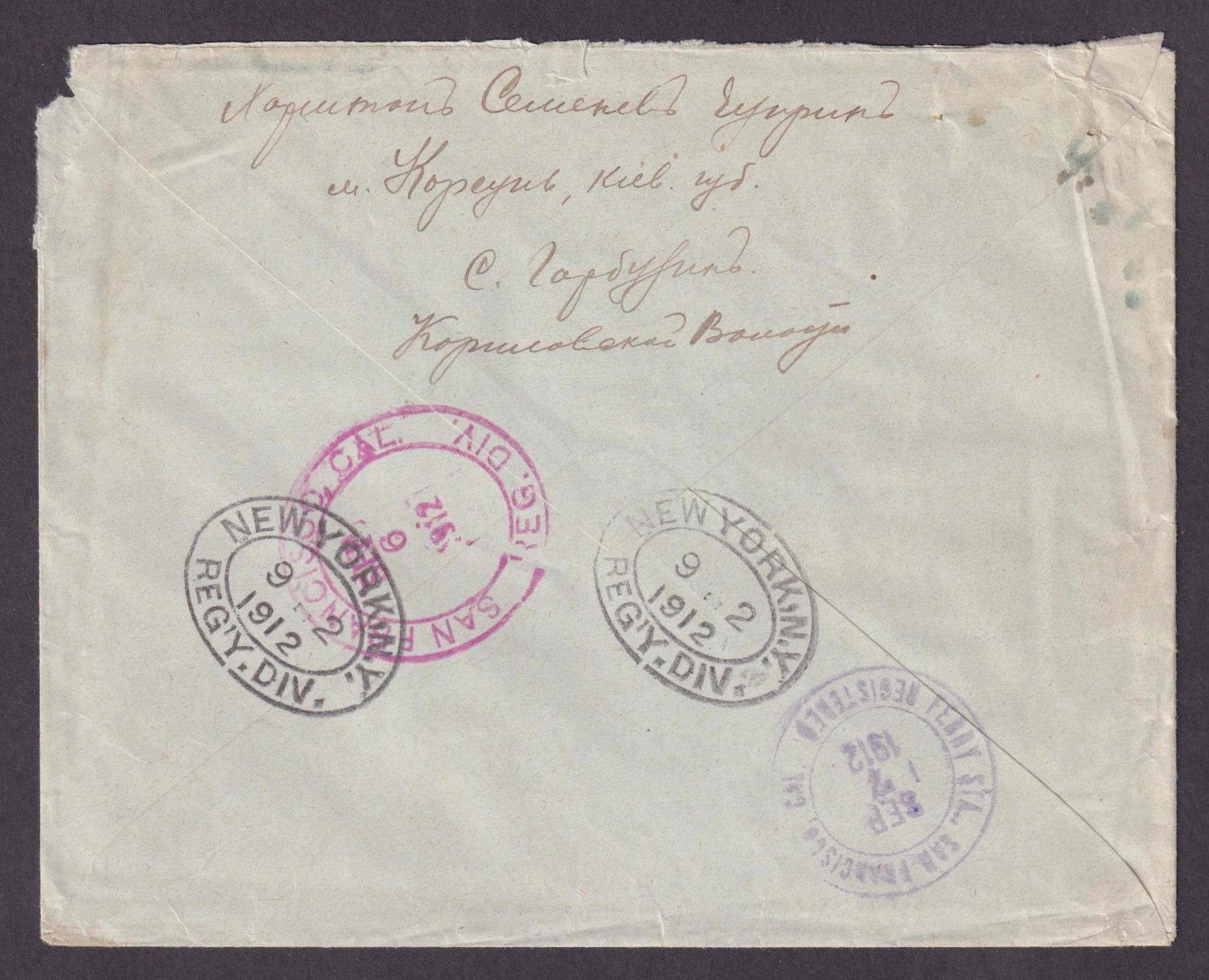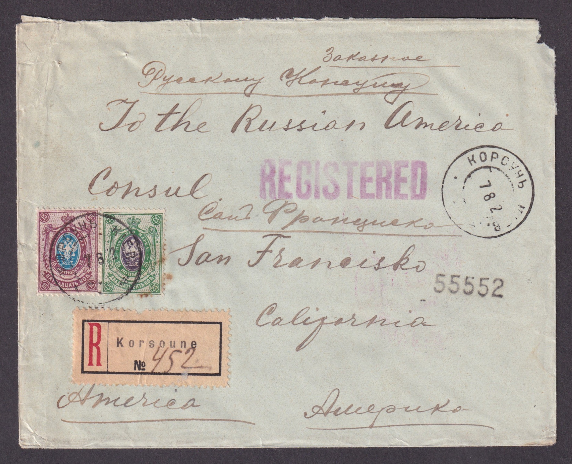 Российская империя. Заказное отправление из Корсуна в Сан-Франциско.