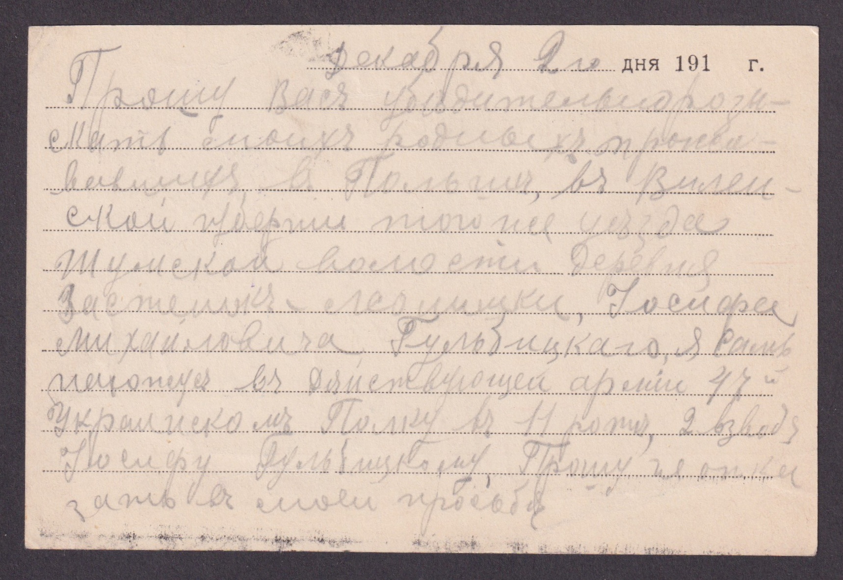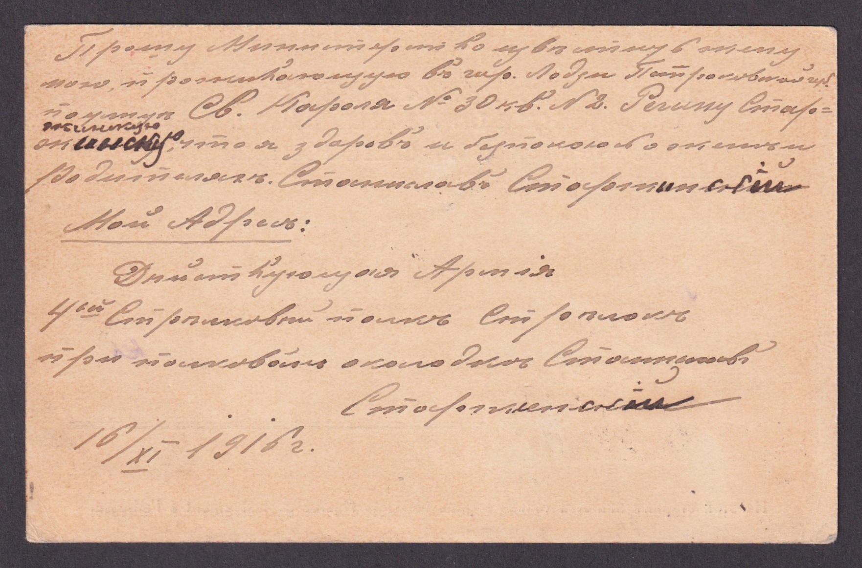 Первая мировая война. Спасский гарнизон. Открытое письмо военнопленного.