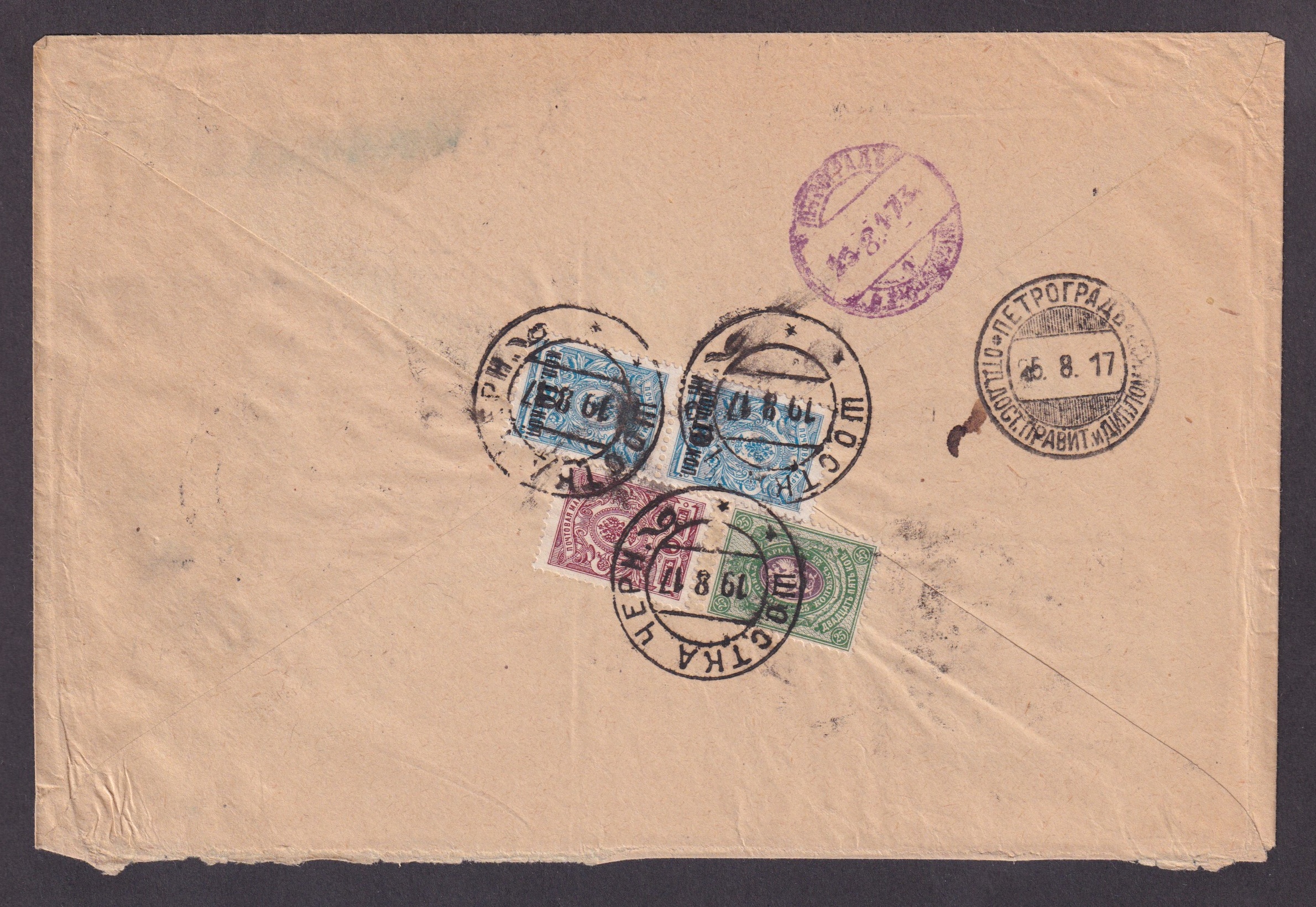 Российская империя. Заказное письмо из Шостки в Петроград со штампом «Отд. дост. правит и диплом кор.».